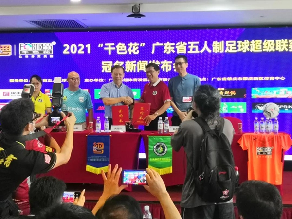 日前,千色花總冠名的2021年第十屆廣東省五人制足球超級(粵超)聯賽新聞發布會在廣州陽光酒店舉行。廣東省五人足球協會會長劉孝五、廣東千色花化工有限公司董事長黃達昌、廣東省五人足球協會黨支部書記黎虹、廣州市銳克體育有限公司董事長趙達新等蒞臨現場。同時,還舉行了隆重的簽約儀式。