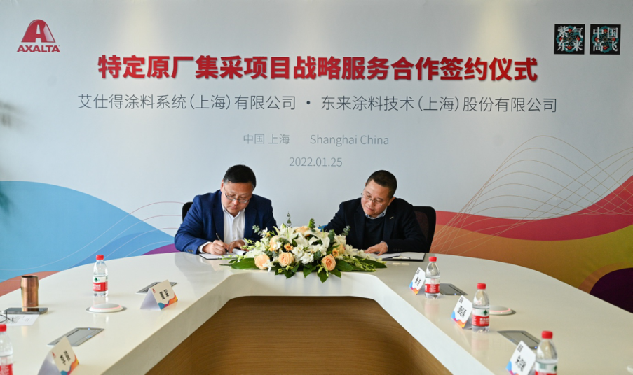 2022年1月25日,全球領先的液體和粉末涂料供應商艾仕得涂料系統(NYSE:AXTA)與東來涂料技術(上海)股份有限公司(“東來技術”)在艾仕得上?偛,舉行“特定原廠集采項目戰略服務合作”簽約儀式。