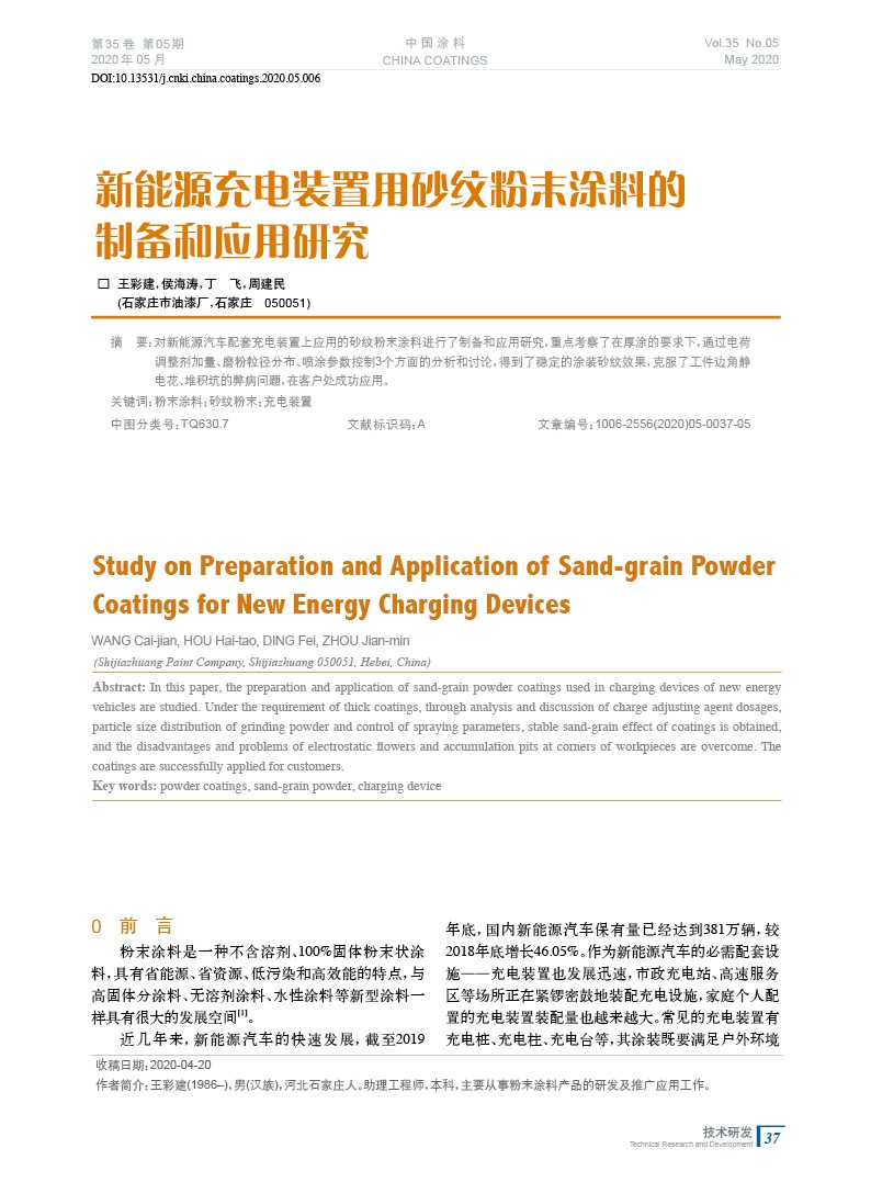 新能源充電裝置用砂紋粉末涂料的制備和應用研究