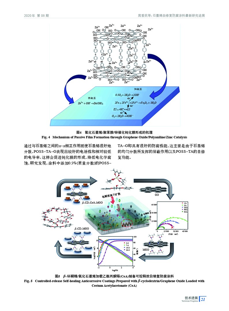 綜述了石墨烯自修復防腐涂料最近幾年的研究進展。通過對石墨烯特定基團進行修飾,修飾后的石墨烯在樹脂中的分散性和穩定性得到改善,同時可以加載緩蝕劑,發揮自修復功能,很好地延長涂層的使用壽命。