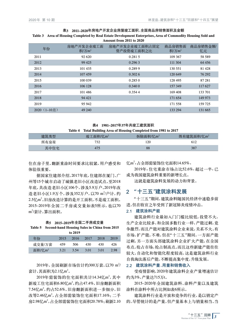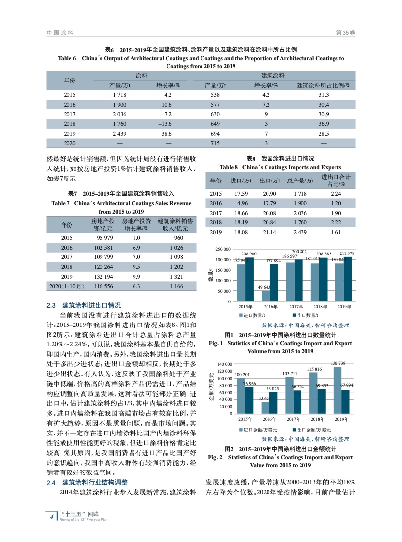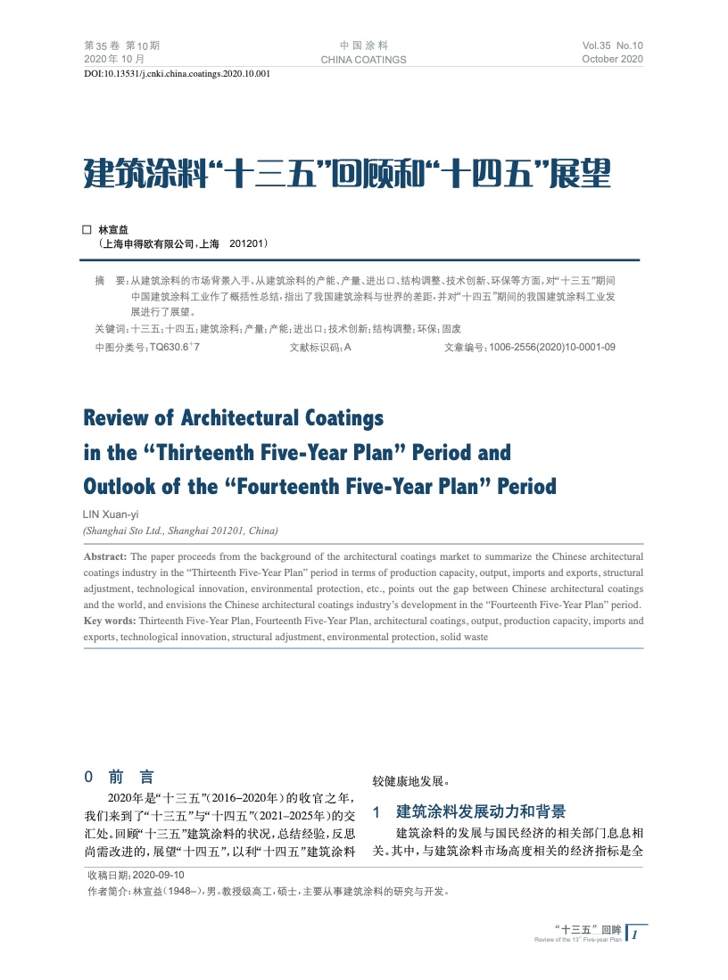 摘要:從建筑涂料的市場(chǎng)背景入手,從建筑涂料的產(chǎn)能、產(chǎn)量、進(jìn)出口、結(jié)構(gòu)調(diào)整、技術(shù)創(chuàng)新、環(huán)保等方面,對(duì)“十三五”期間中國(guó)建筑涂料工業(yè)作了概括性總結(jié),指出了我國(guó)建筑涂料與世界的差距,并對(duì)“十四五”期間的我國(guó)建筑涂料工業(yè)發(fā)展進(jìn)行了展望。