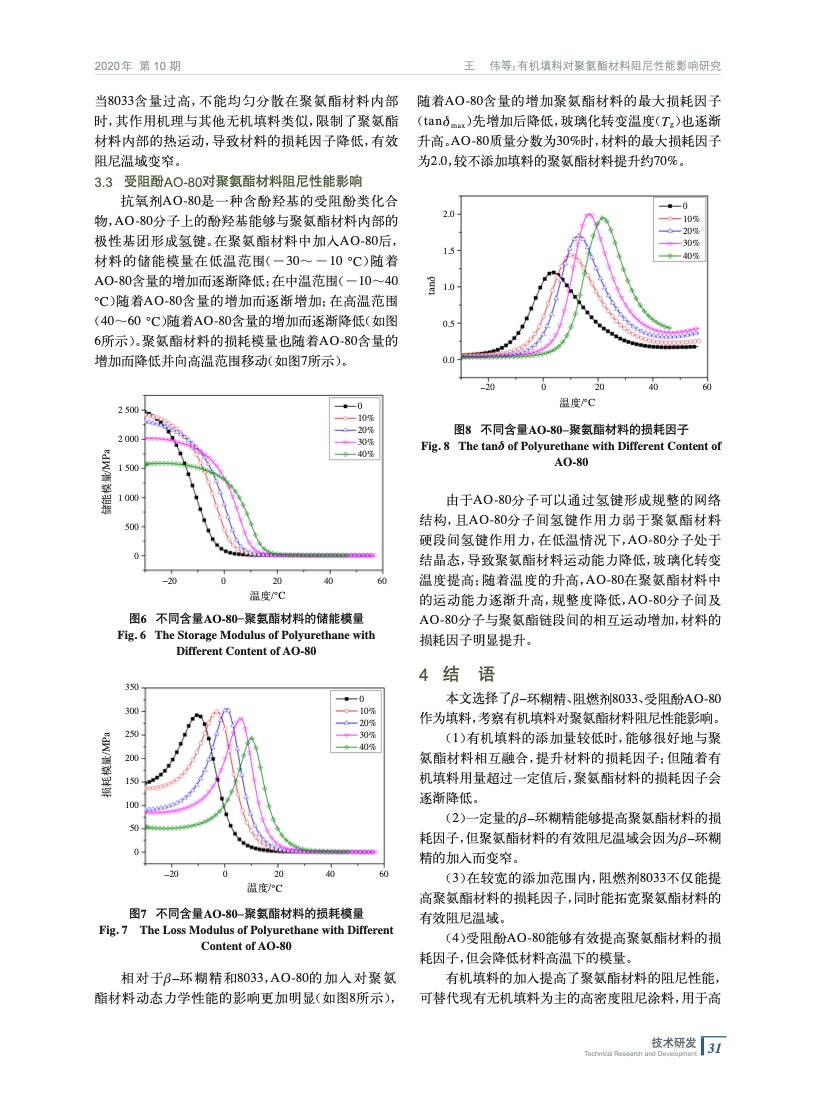 有機填料對聚氨酯材料阻尼性能影響研究