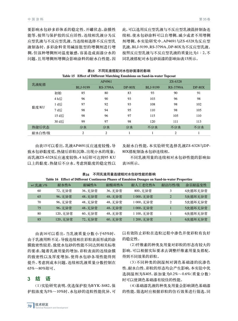 水包砂多彩涂料的制備與性能研究