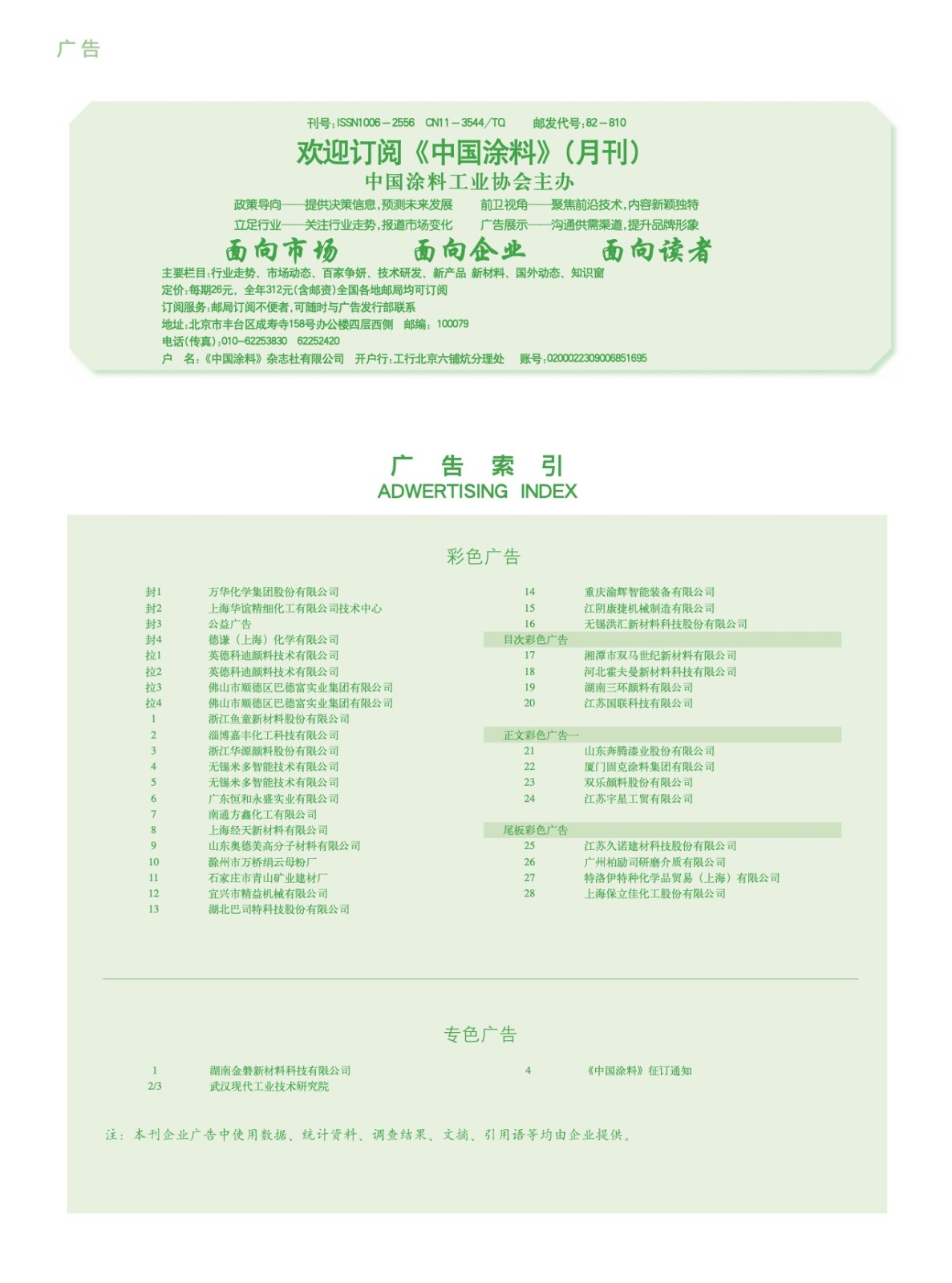 湖南金磐、武漢現代、《中國涂料》征訂通知
