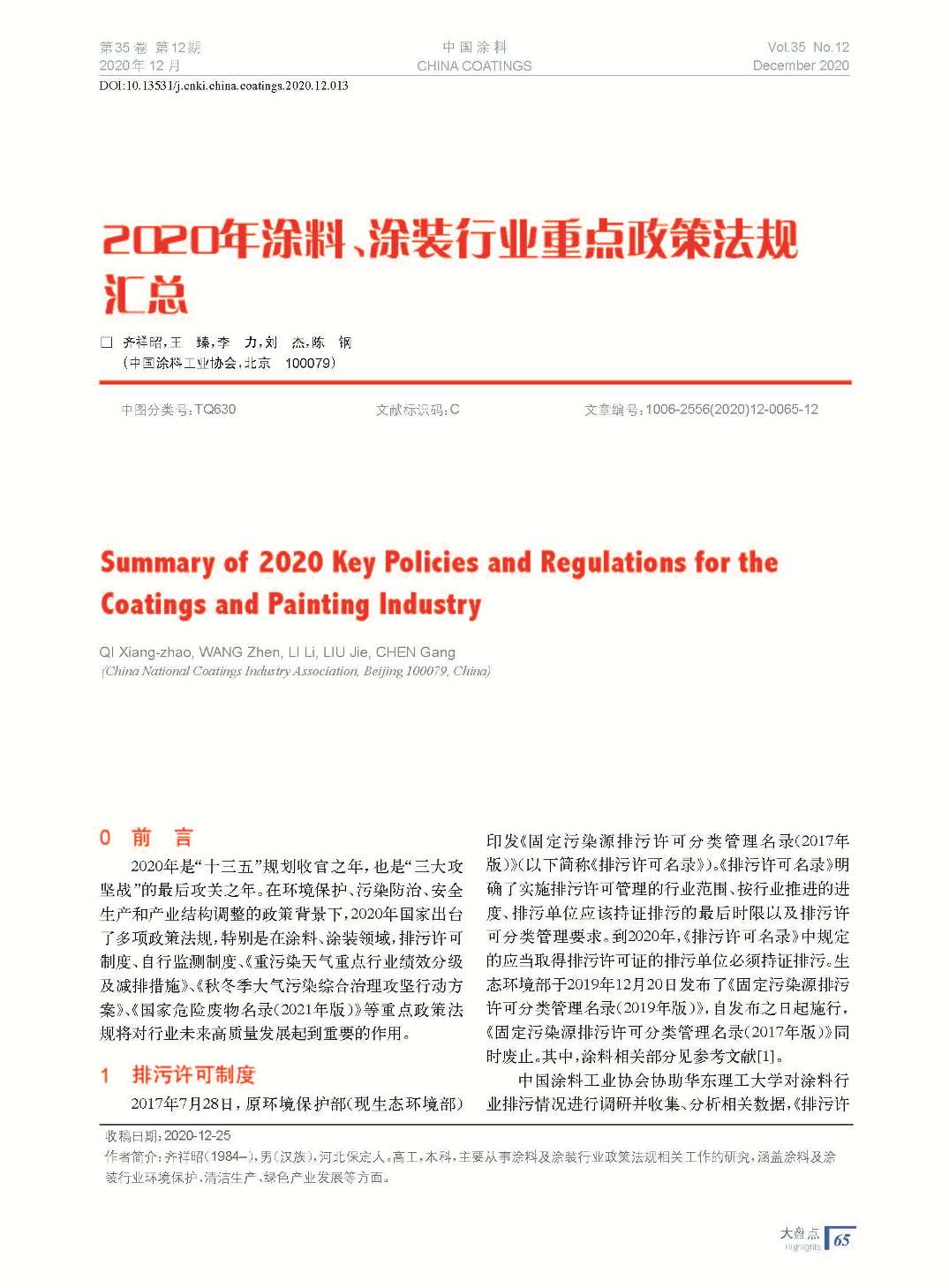 本文系作者@齊祥昭,王 臻,李 力,劉 杰,陳 鋼 授權中國涂料網發表,并經中國涂料網編輯,未經允許不得轉載,如需轉載請聯系chinacoatingnet@vip.163.com