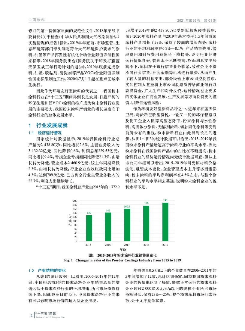 闡述了“十三五”期間我國涂料工業經濟運行情況和粉末涂料的行業運行情況,分析了5年間粉末涂料及其原材料和制粉設備的技術進步,提出粉末涂料行業高質量發展需要解決的短板問題,對行業發展具有一定的指導意義。