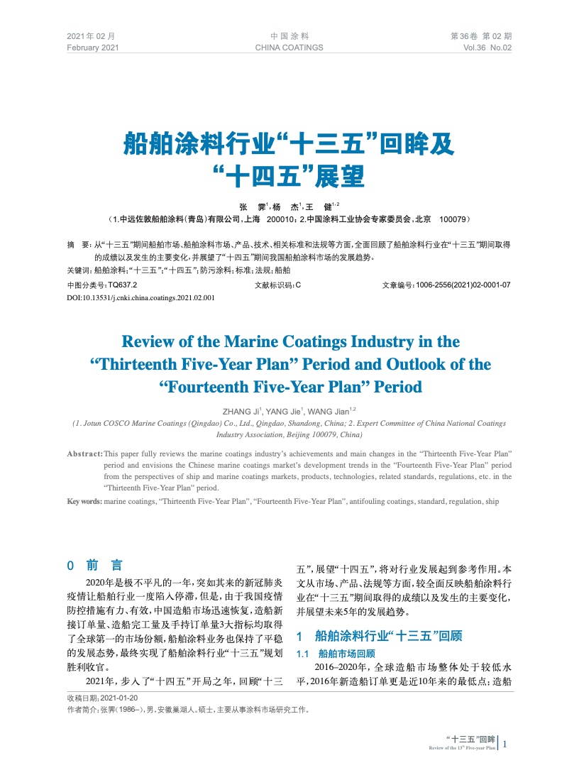 船舶涂料行業(yè)“十三五”回眸及“十四五”展望