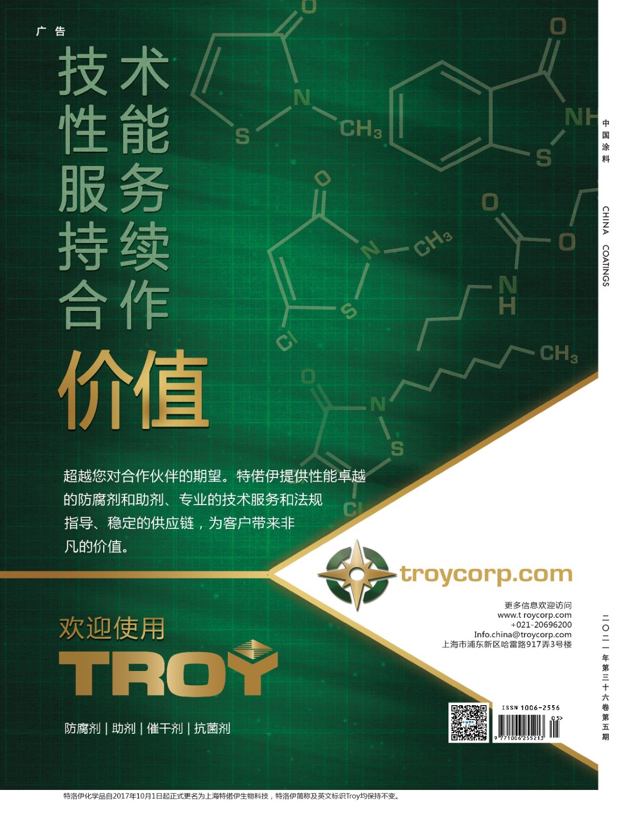 封1:蘇州弗克技術股份有限公司;封2:上海保立佳化工股份有限公司;封3:公益廣告;封4:特洛伊特種化學品貿易(上海)有限公司