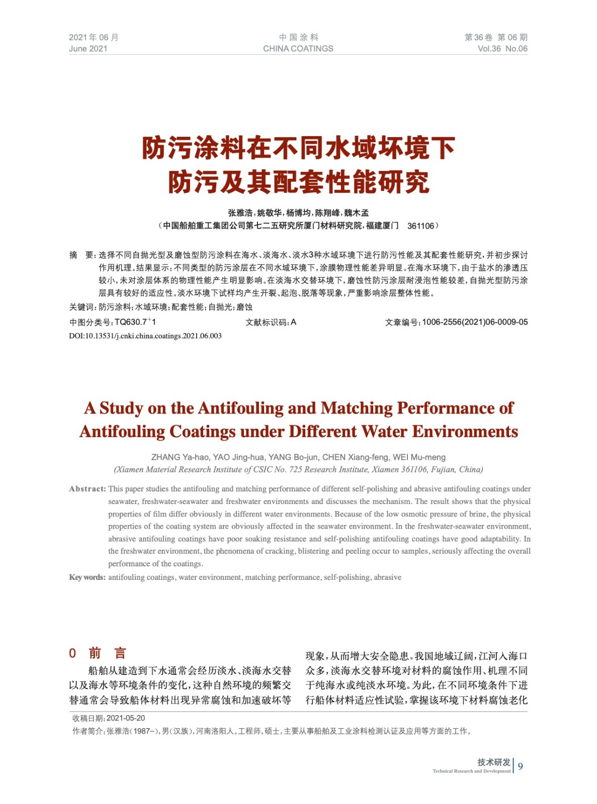 本文系作者@張雅浩,姚敬華,楊博均,陳翔峰,魏木孟 授權中國涂料網發表,并經中國涂料網編輯,未經允許不得轉載,如需轉載請聯系chinacoatingnet@vip.163.com