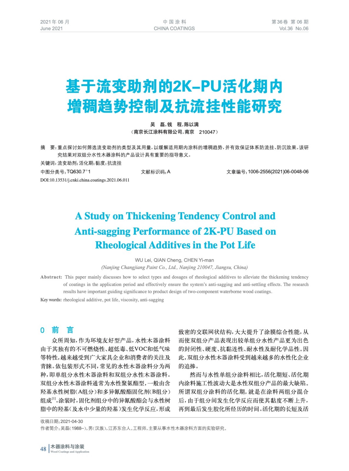 基于流變助劑的2K-PU活化期內(nèi)增稠趨勢(shì)控制及抗流掛性能研究