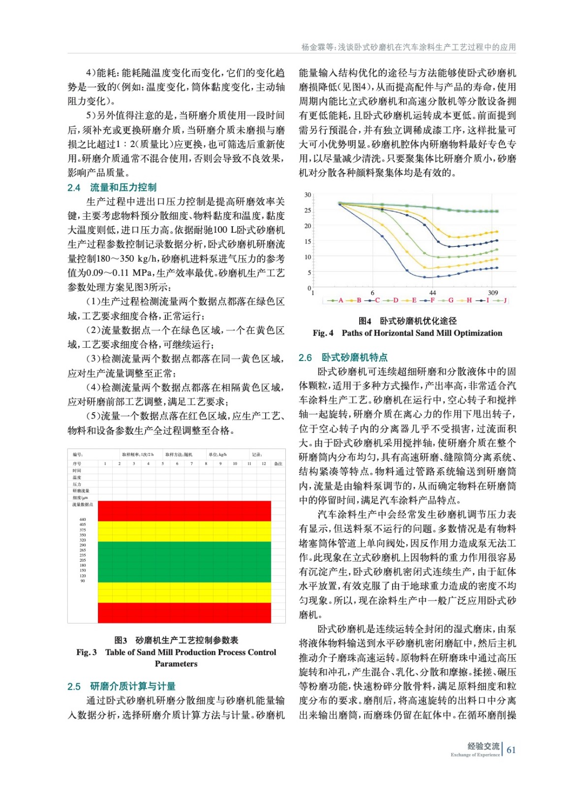 摘要:通過對汽車涂料生產過程中的關鍵設備——臥式砂磨機工作原理的研究,通過采用不同研磨工藝,在確保產品細度和外觀質量、研磨遍數不超過工藝要求的前提下,通過考察不同研磨介質充填量、調整物料不同進料壓力、可變出料等因素對砂磨機研磨效率的影響,指出常見問題的排查內容,結合數據分析以尋求出較為合理的設備工藝參數,制定臥式砂磨機生產操作工藝規程,有效保證汽車涂料在生產研磨分散過程中其綜合性能達到配方設計要求。