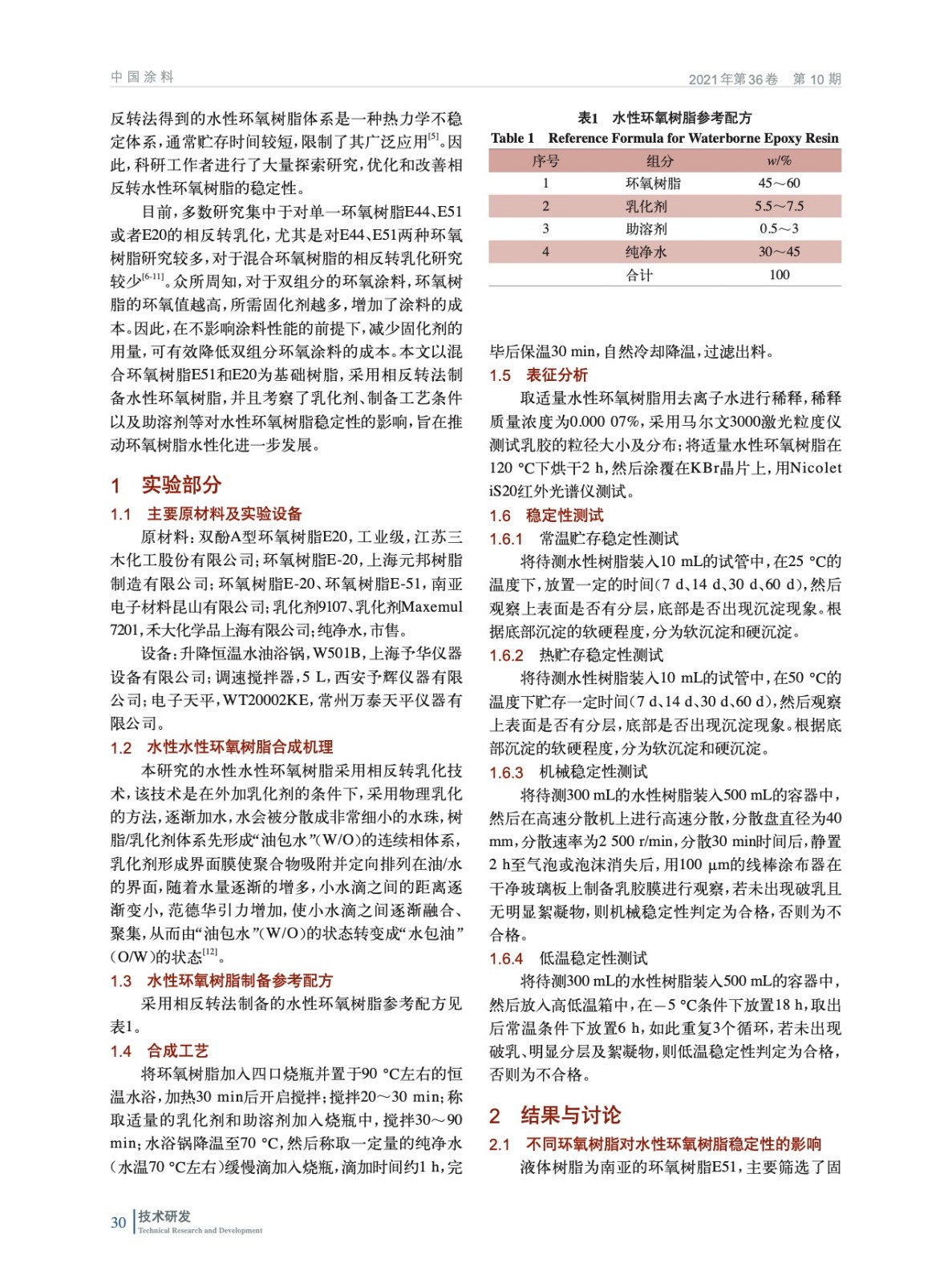 相反轉(zhuǎn)法制備水性環(huán)氧樹脂的穩(wěn)定性研究
