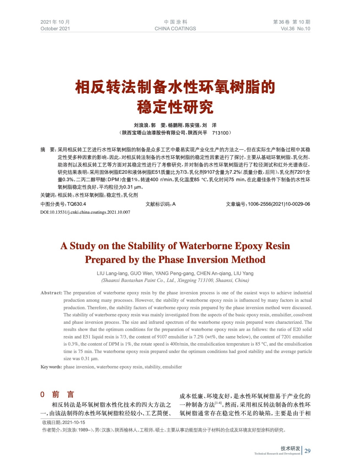 本文系作者@劉浪浪,郭 雯,楊鵬剛,陳安強,劉 洋 授權(quán)中國涂料網(wǎng)發(fā)表,并經(jīng)中國涂料網(wǎng)編輯,未經(jīng)允許不得轉(zhuǎn)載,如需轉(zhuǎn)載請聯(lián)系chinacoatingnet@vip.163.com