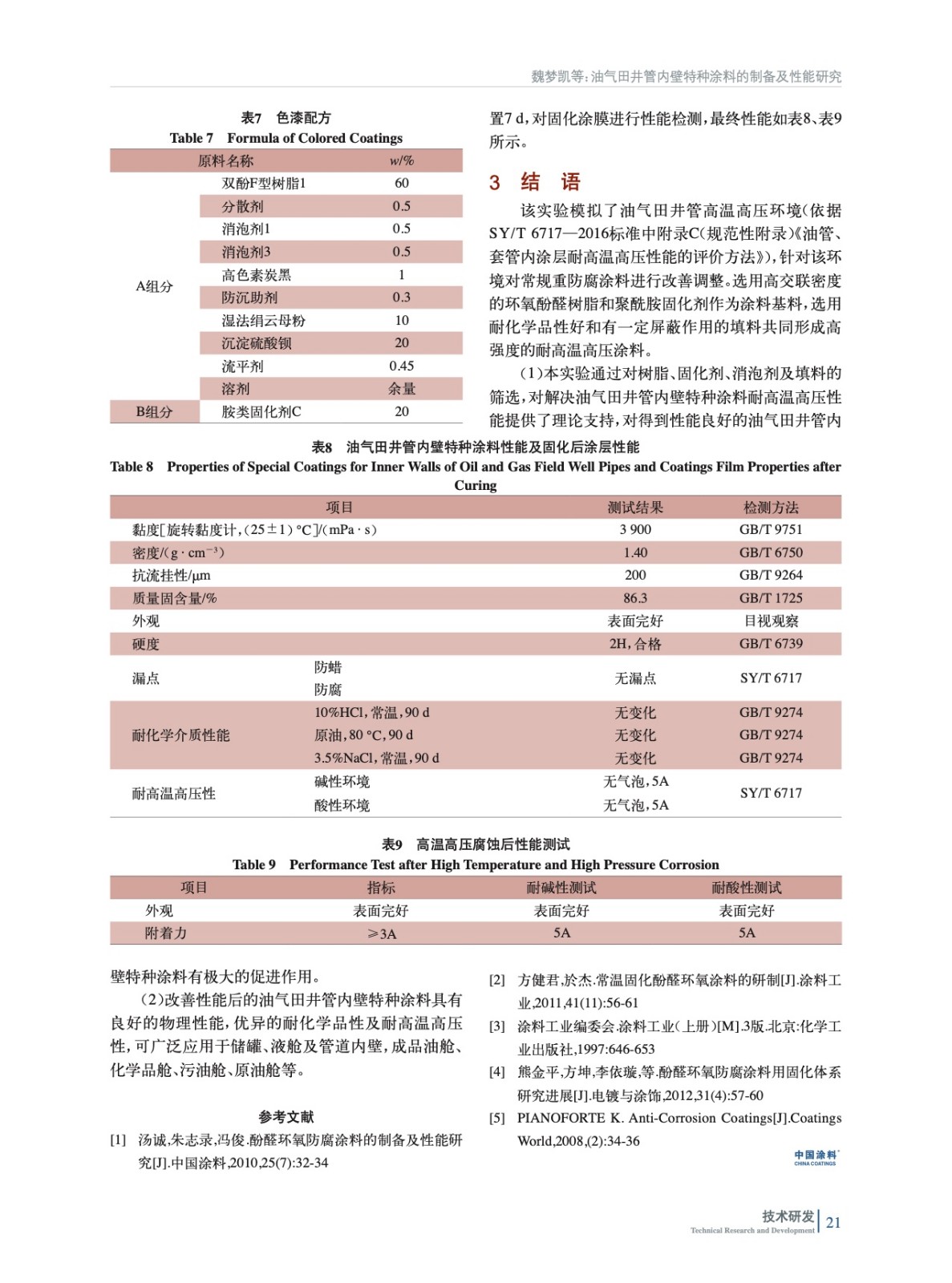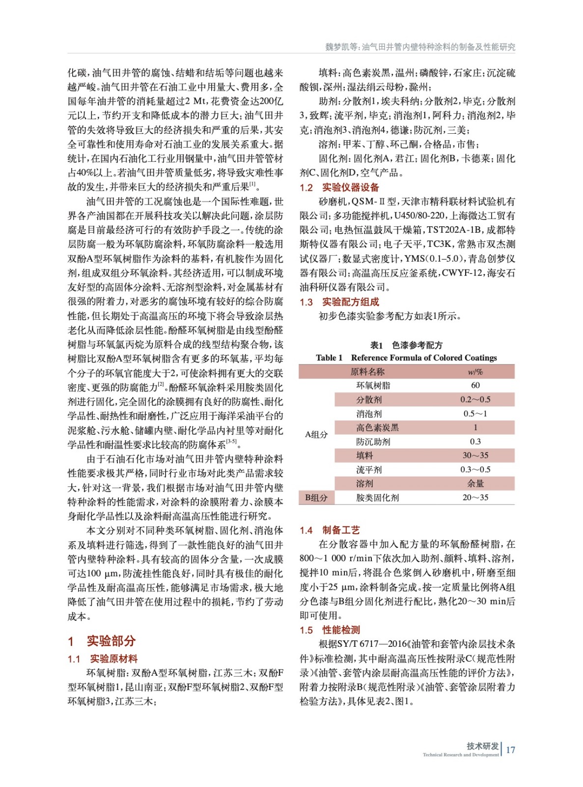油氣田井管內壁特種涂料的制備及性能研究