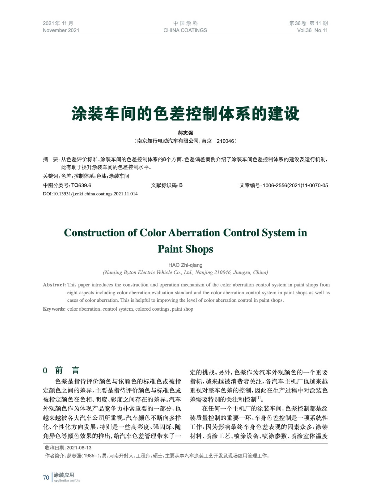 摘要:從色差評價標(biāo)準(zhǔn)、涂裝車間的色差控制體系的8個方面、色差偏差案例介紹了涂裝車間色差控制體系的建設(shè)及運行機制,此有助于提升涂裝車間的色差控制水平。