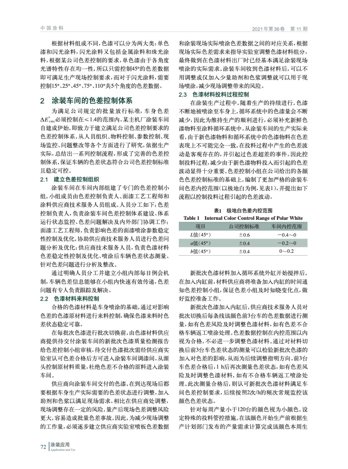 涂裝車間的色差控制體系的建設(shè)