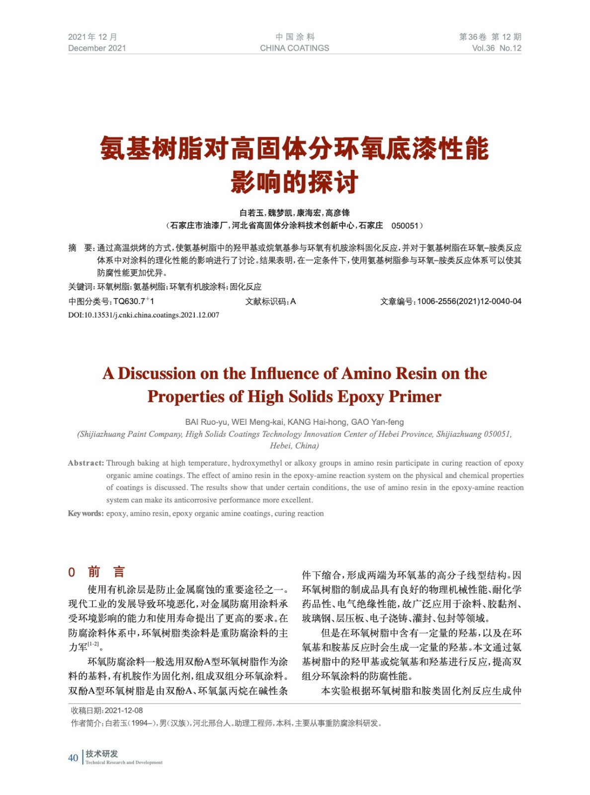 氨基樹脂對高固體分環氧底漆性能影響的探討