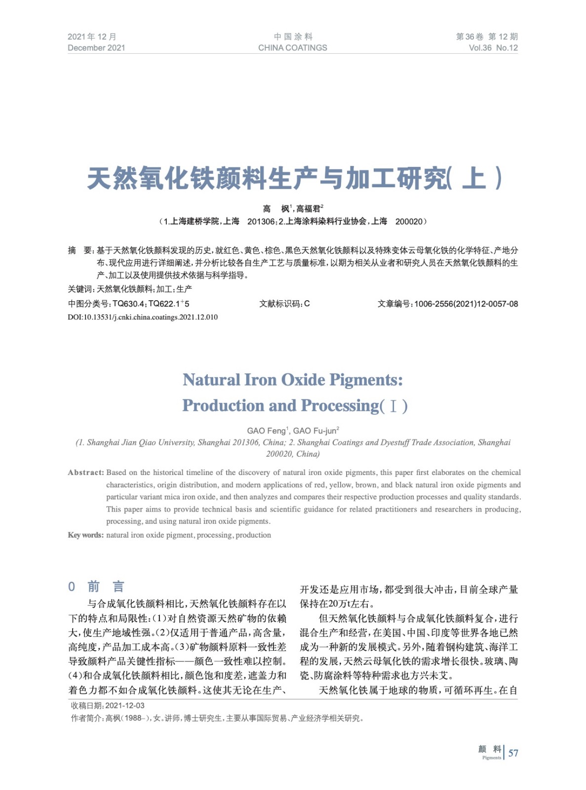 摘要:基于天然氧化鐵顏料發(fā)現(xiàn)的歷史,就紅色、黃色、棕色、黑色天然氧化鐵顏料以及特殊變體云母氧化鐵的化學(xué)特征、產(chǎn)地分布、現(xiàn)代應(yīng)用進行詳細(xì)闡述,并分析比較各自生產(chǎn)工藝與質(zhì)量標(biāo)準(zhǔn),以期為相關(guān)從業(yè)者和研究人員在天然氧化鐵顏料的生產(chǎn)、加工以及使用提供技術(shù)依據(jù)與科學(xué)指導(dǎo)。
