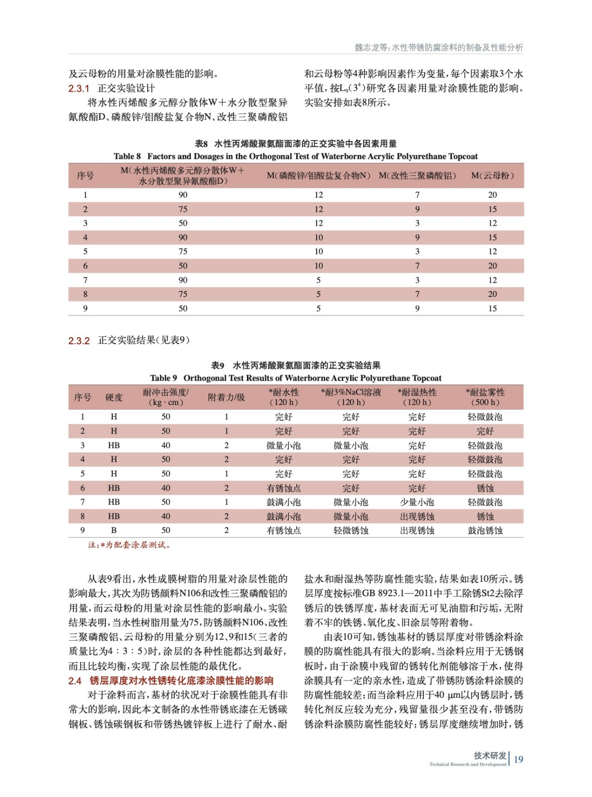 水性帶銹防腐涂料的制備及性能分析