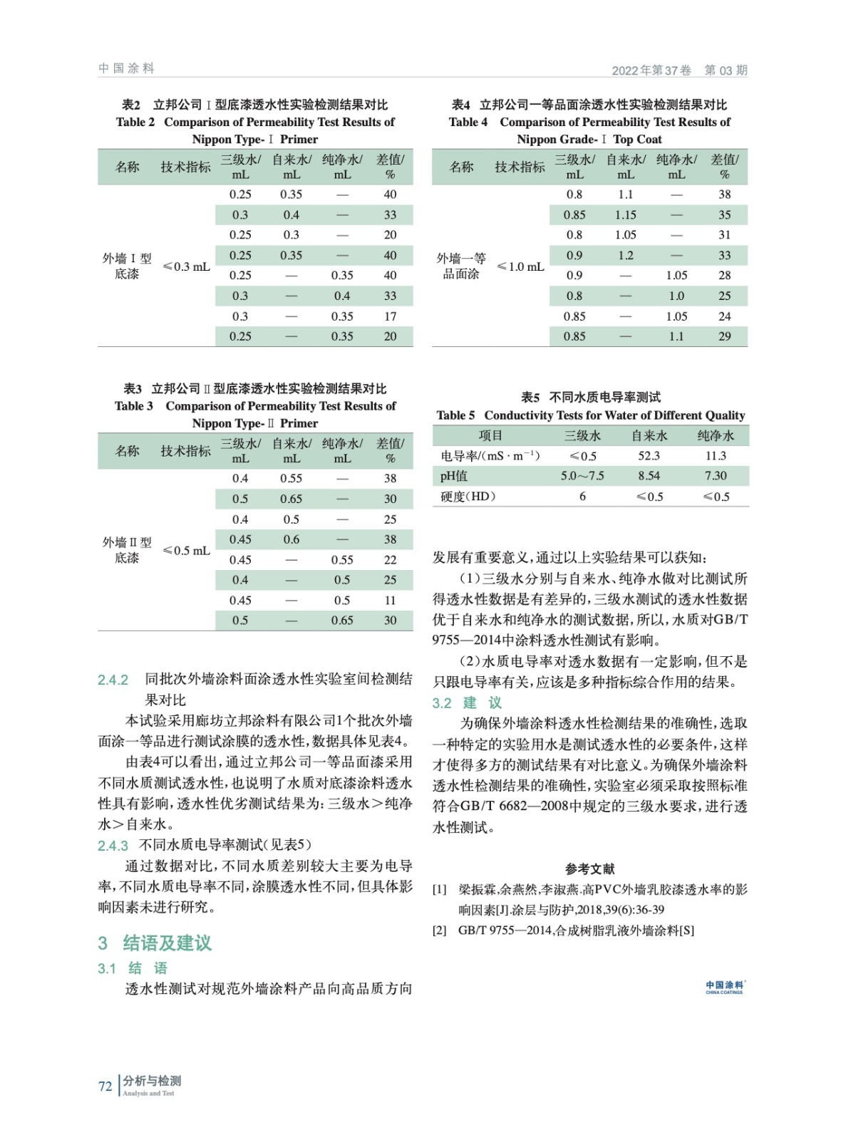 GB/T 9755—2014標準中水質(zhì)對涂料透水性測試的影響探討