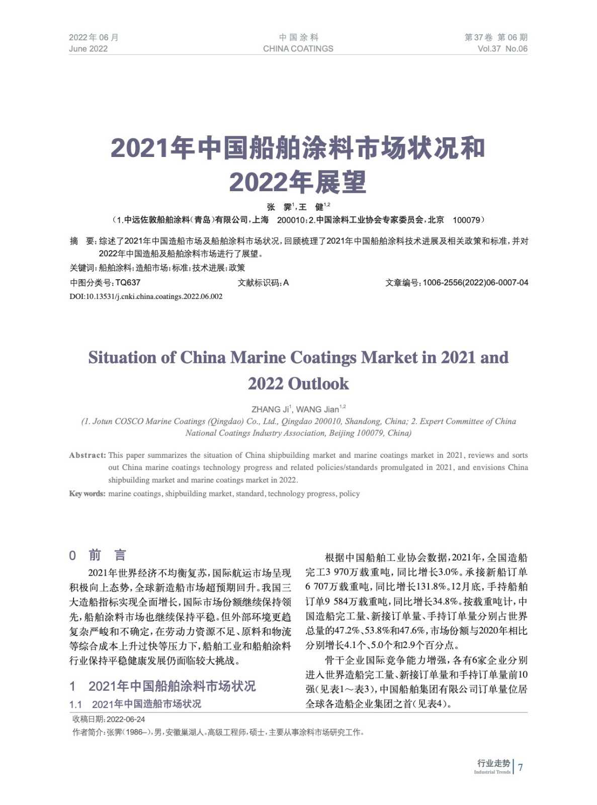 綜述了2021年中國造船市場及船舶涂料市場狀況,回顧梳理了2021年中國船舶涂料技術進展及相關政策和標準,并對2022年中國造船及船舶涂料市場進行了展望。