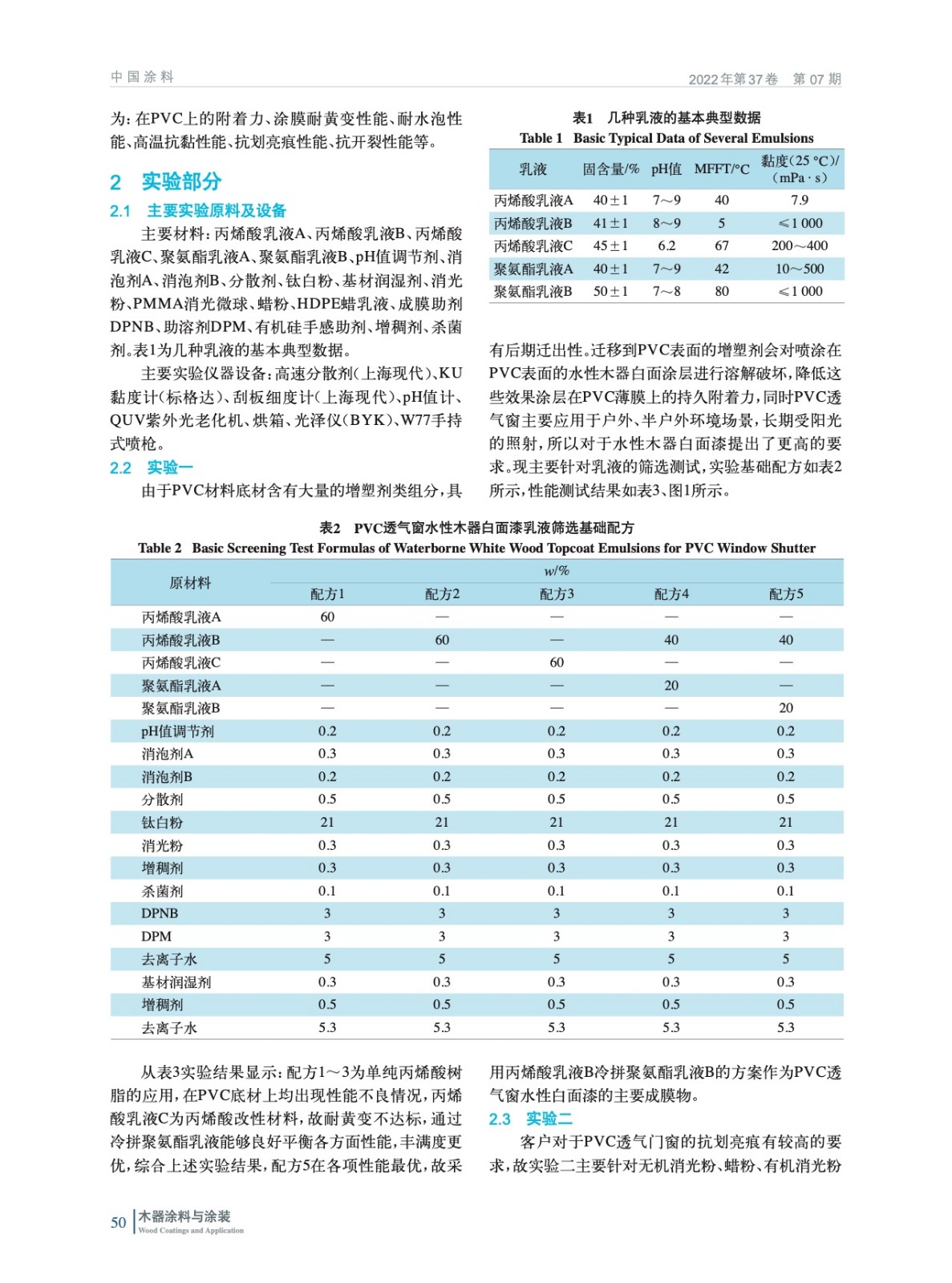 PVC透氣窗用水性木器白面漆的研制與應(yīng)用