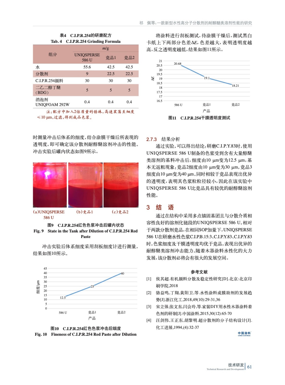 一款新型水性高分子分散劑的耐醇醚類溶劑性能的研究