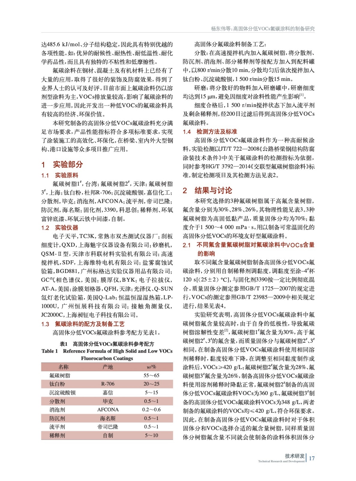 高固體分低VOCs氟碳涂料的制備研究