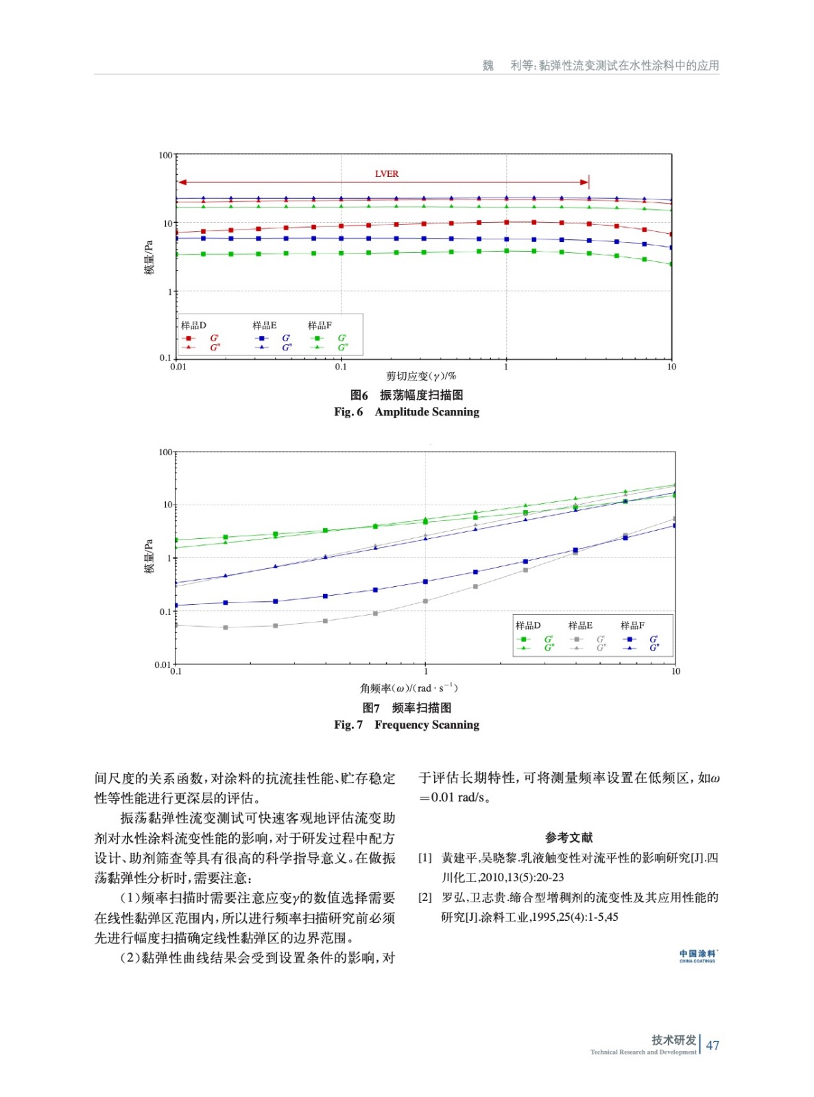 采用振蕩模式下的幅度掃描和頻率掃描對水性涂料的微觀結構進行評估,通過對黏彈性曲線的研究,探討了儲能(彈性)模量(G')、黏性(損耗)模量(G")變化對涂料的貯存穩定性、抗流掛性的影響。