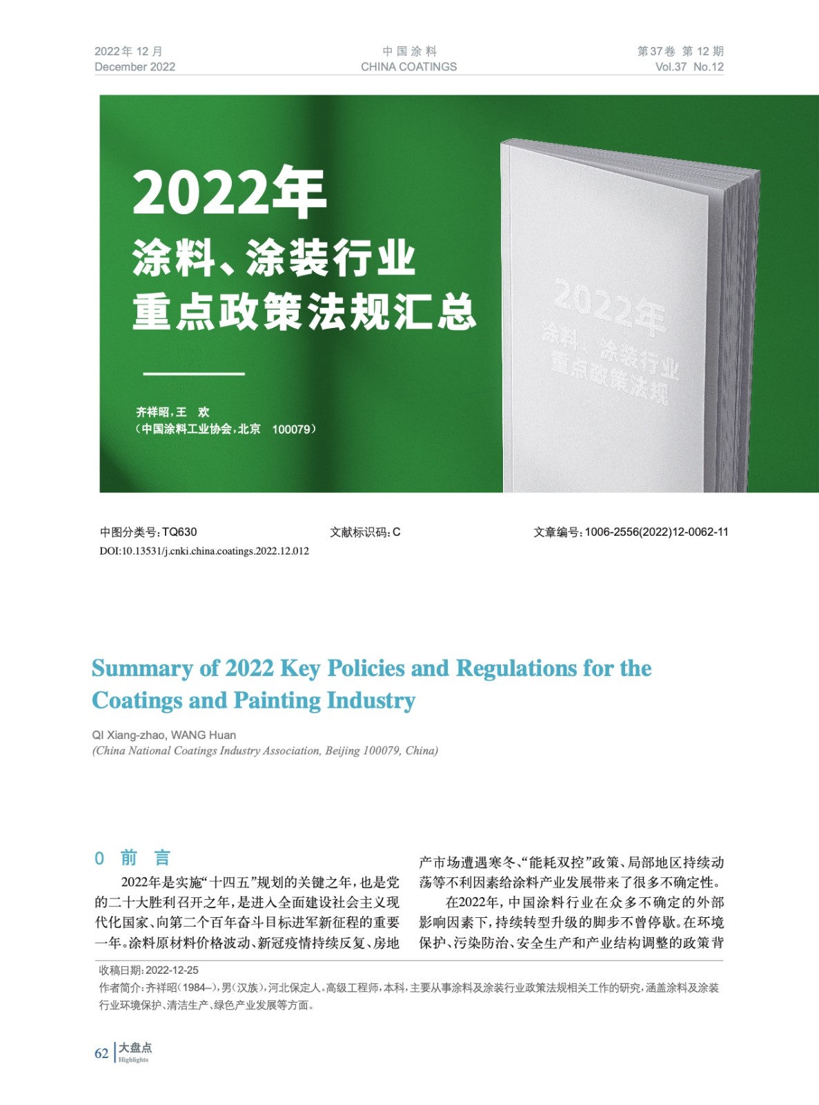 發(fā)表于2023-04-07 18:28:44| 次閱讀| 來源中國涂料| 作者齊祥昭,王 歡