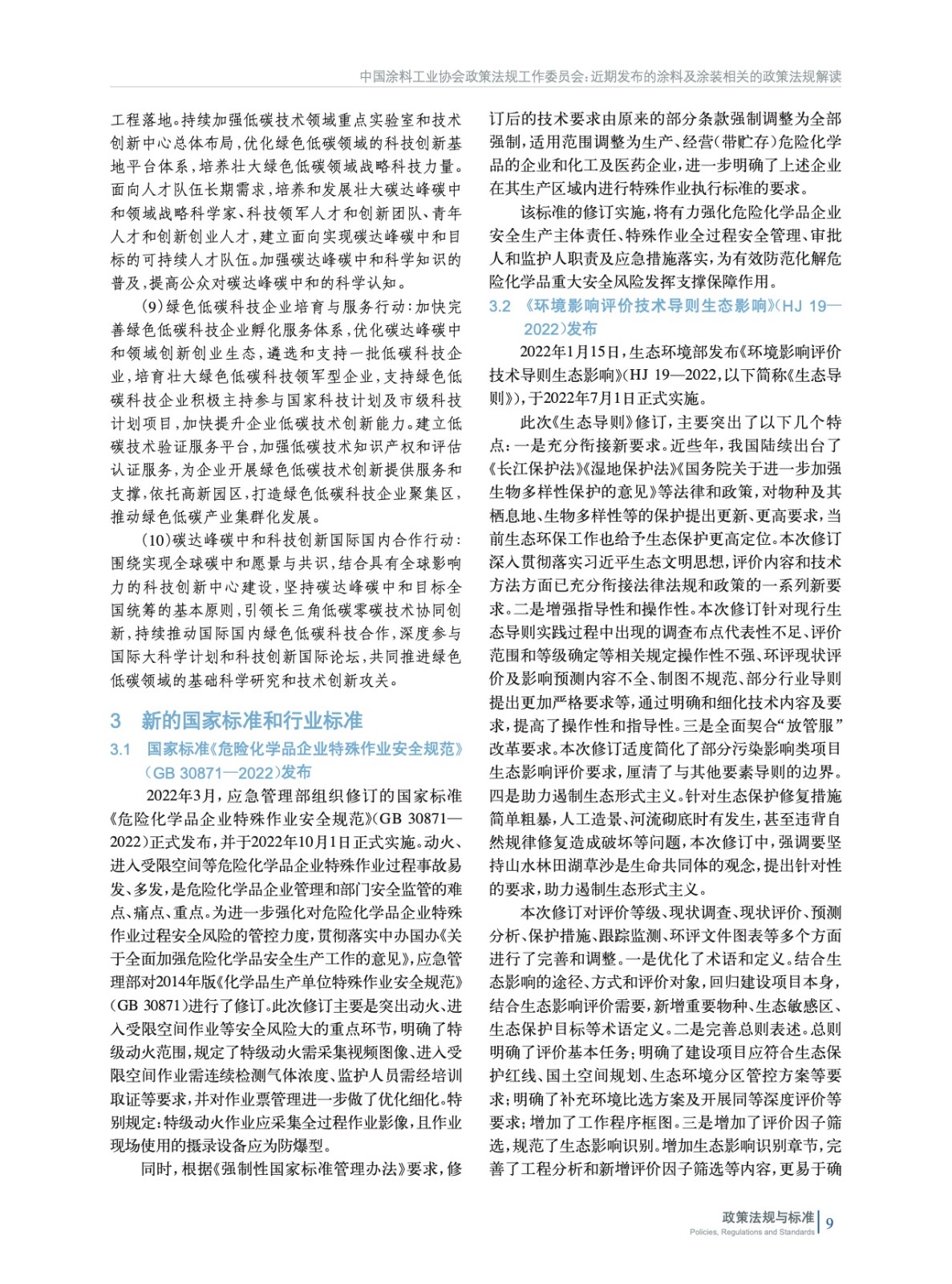 摘要:編者按:剛剛過去的2022年,是黨和國家歷史上極為重要的一年。黨的二十大勝利召開,制定了當(dāng)前和今后一個(gè)時(shí)期黨和國家的大政方針,描繪了以中國式現(xiàn)代化全面推進(jìn)中華民族偉大復(fù)興的宏偉藍(lán)圖,全面建設(shè)社會(huì)主義現(xiàn)代化國家新征程邁出堅(jiān)實(shí)步伐。在百年變局和世紀(jì)疫情相互疊加的復(fù)雜局面下,面對(duì)超預(yù)期因素的沖擊,面對(duì)諸多困難挑戰(zhàn),全年經(jīng)濟(jì)保持穩(wěn)中向好,就業(yè)總體穩(wěn)定,物價(jià)平穩(wěn),國際收支狀況較好。我們能夠取得這樣的成績,殊為不易,值得倍加珍惜!中國涂料工業(yè)協(xié)會(huì)政策法規(guī)工作委員會(huì)將2022年國家和地方出臺(tái)的與涂料和涂裝相關(guān)的政策法規(guī)進(jìn)行了梳理和匯總,將政策中與涂料工業(yè)相關(guān)的內(nèi)容原文摘錄,并由行業(yè)內(nèi)的專家進(jìn)行了解讀,以便于行業(yè)同仁及時(shí)掌握政策動(dòng)態(tài)和要點(diǎn),更好地推動(dòng)涂料及涂裝行業(yè)的健康發(fā)展。
