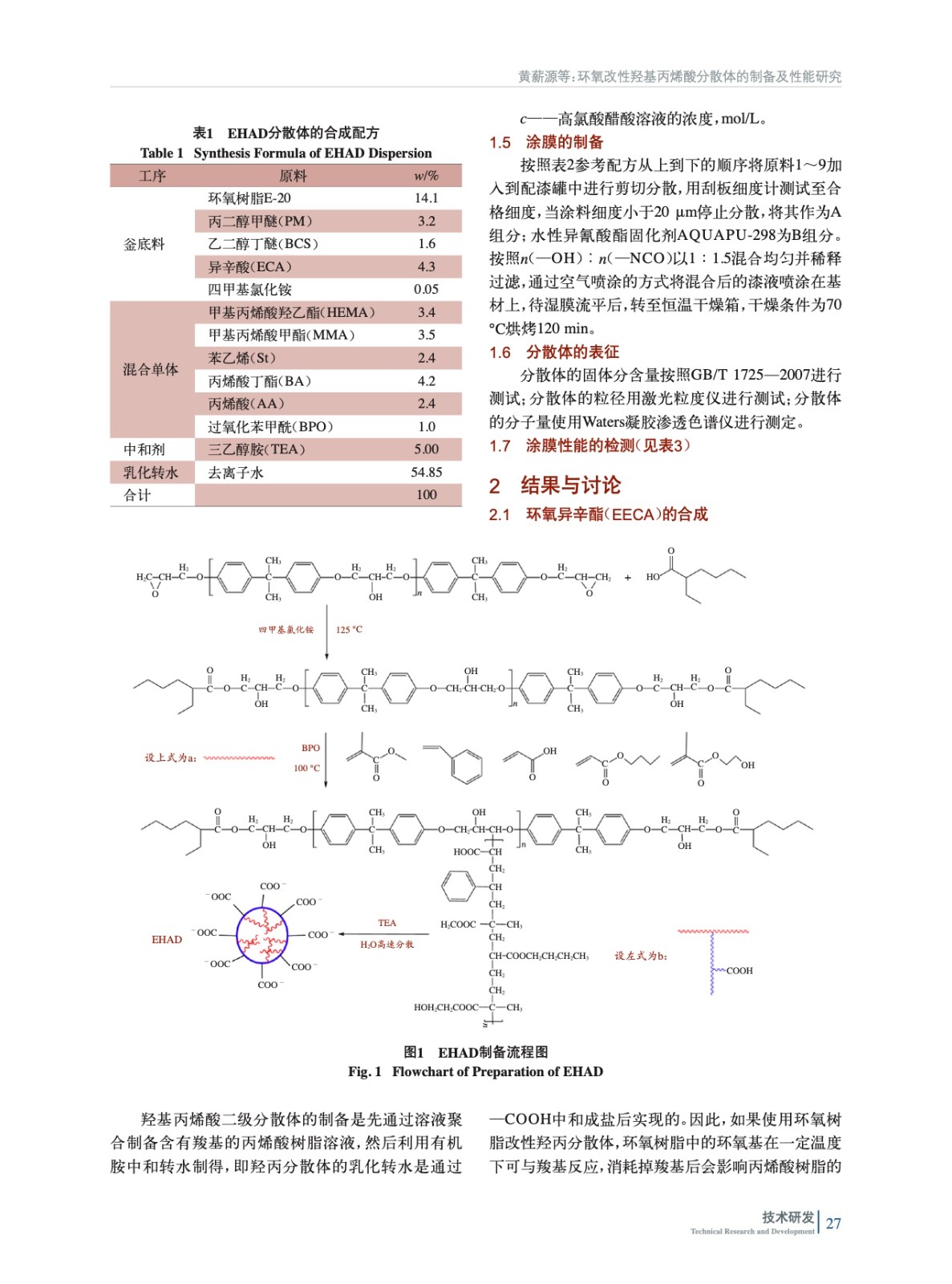 環(huán)氧改性羥基丙烯酸分散體的制備及性能研究