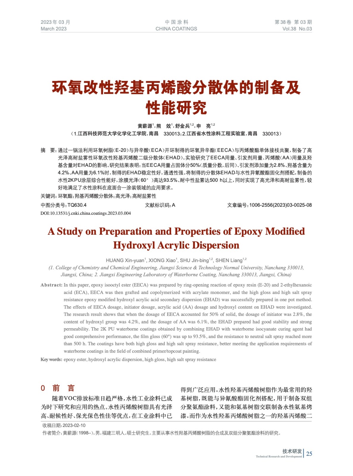 本文系作者@黃薪源,熊 效,舒金兵,申 亮 授權(quán)中國涂料網(wǎng)發(fā)表,并經(jīng)中國涂料網(wǎng)編輯,未經(jīng)允許不得轉(zhuǎn)載,如需轉(zhuǎn)載請聯(lián)系chinacoatingnet@vip.163.com