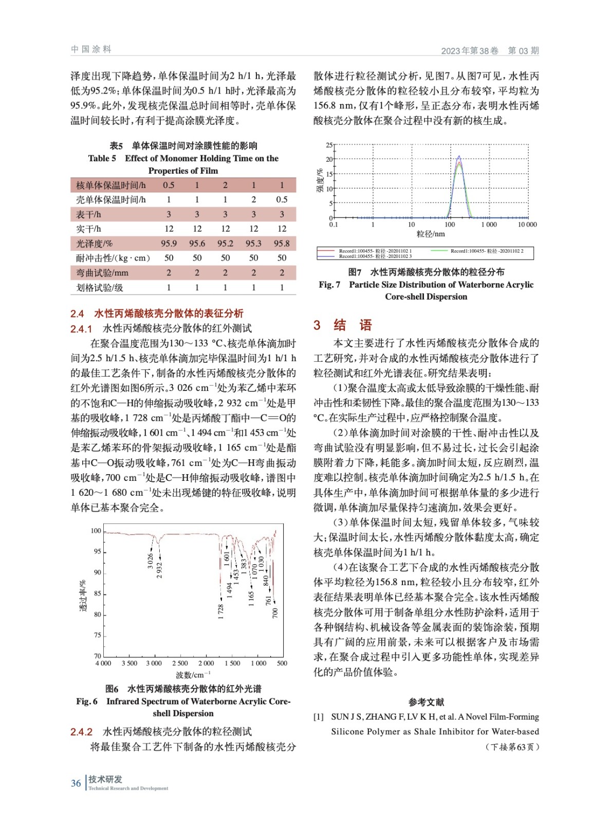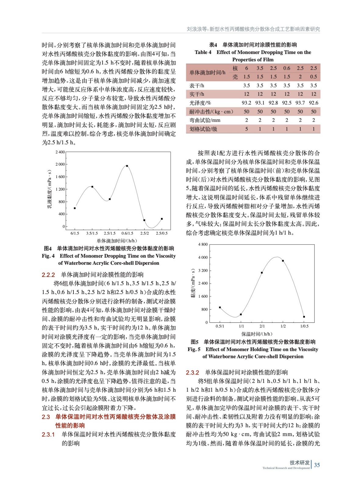 新型水性丙烯酸核殼分散體合成工藝影響因素研究