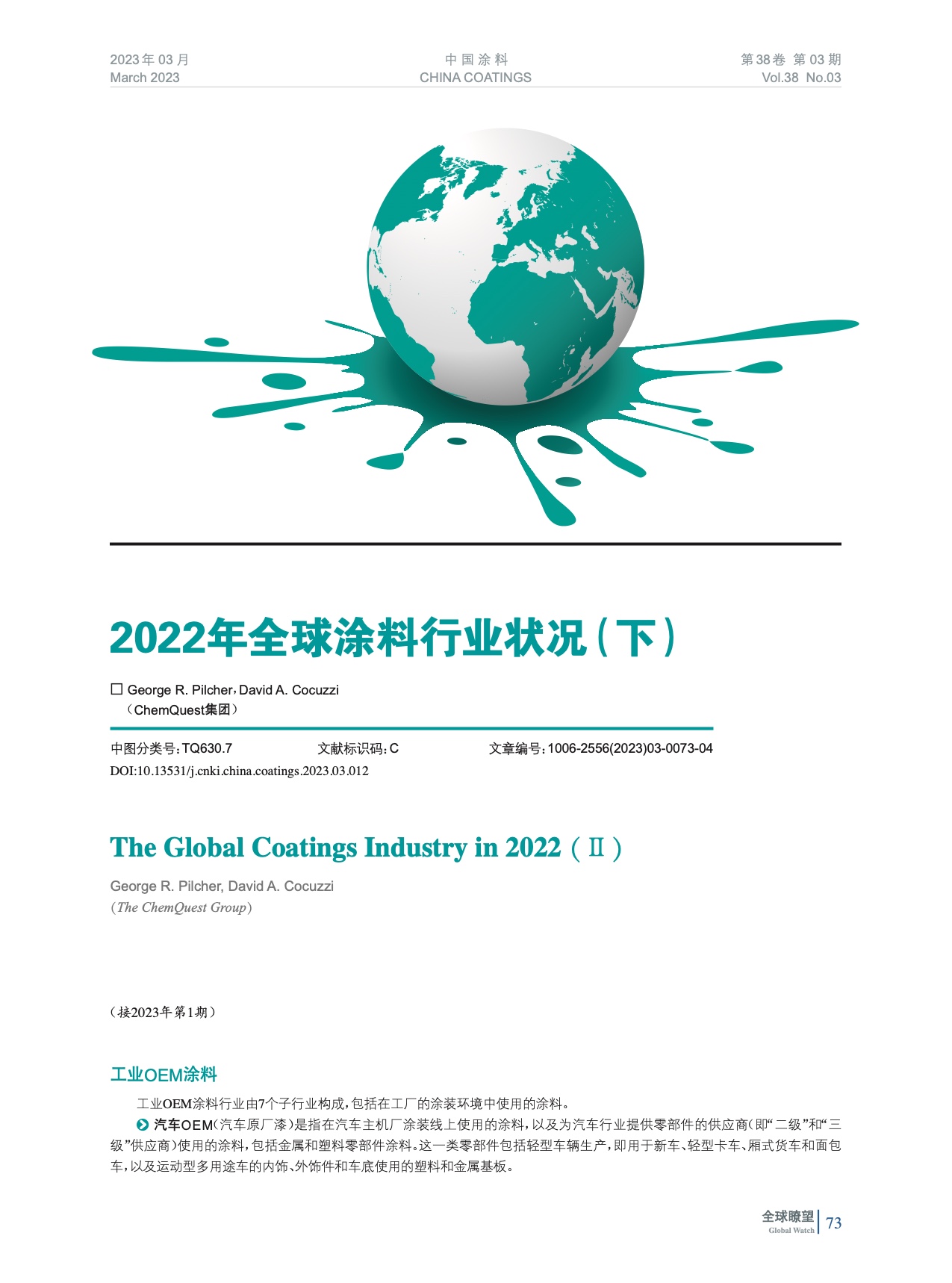 本文系作者@George R. Pilcher, David A. Cocuzzi 授權(quán)中國(guó)涂料網(wǎng)發(fā)表,并經(jīng)中國(guó)涂料網(wǎng)編輯,未經(jīng)允許不得轉(zhuǎn)載,如需轉(zhuǎn)載請(qǐng)聯(lián)系chinacoatingnet@vip.163.com