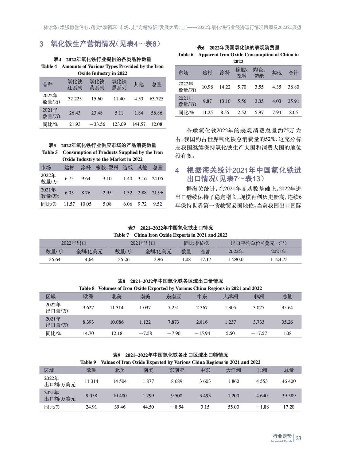 增強穩住信心,落實“雙循環”市場,走“專精特新”發展之路(上)——2022年氧化鐵行業經濟運行情況回顧及2023年展望