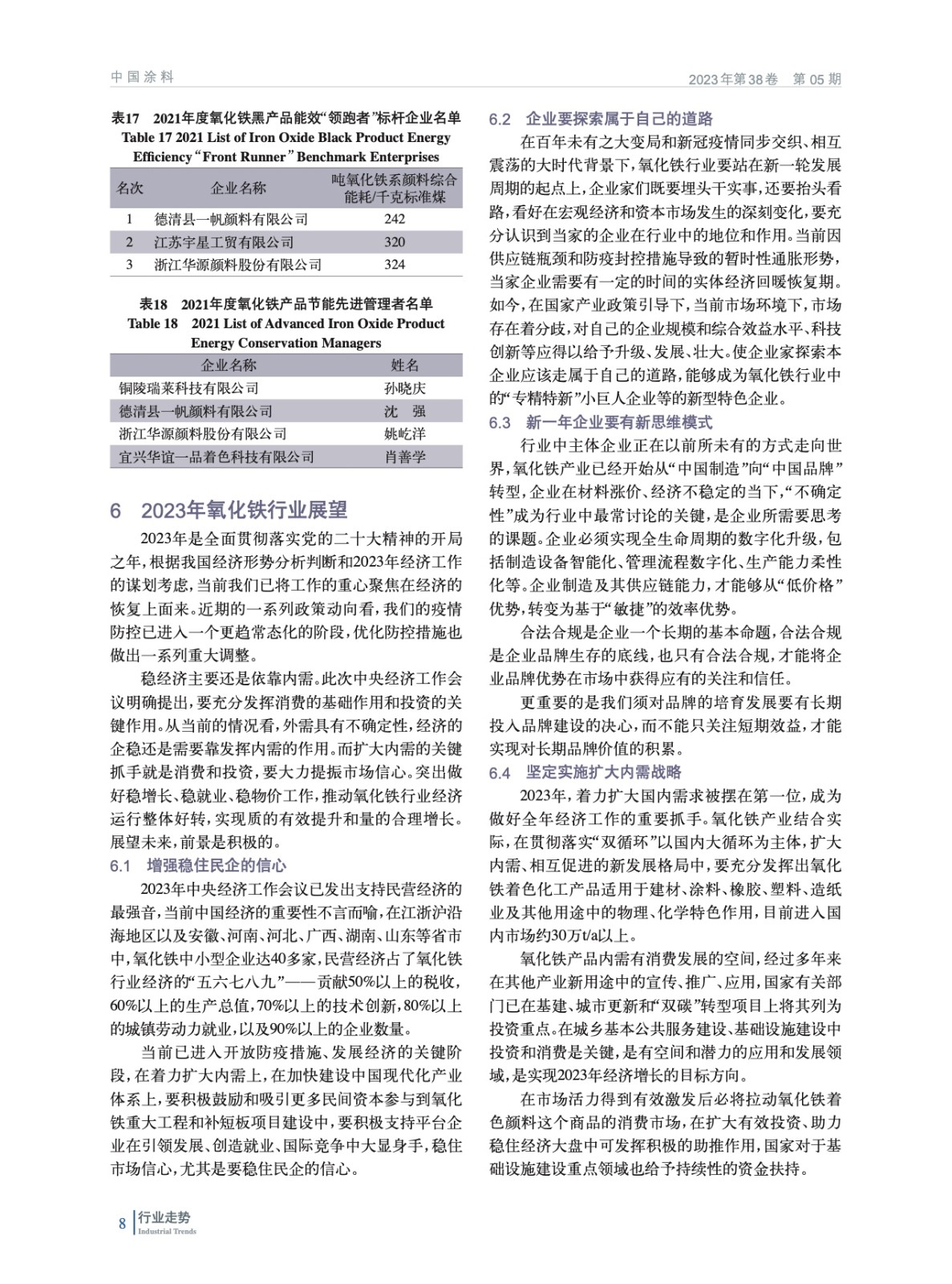 增強(qiáng)穩(wěn)住信心,落實“雙循環(huán)”市場,走“專精特新”發(fā)展之路(下)——2022年氧化鐵行業(yè)經(jīng)濟(jì)運(yùn)行情況回顧及2023年展望