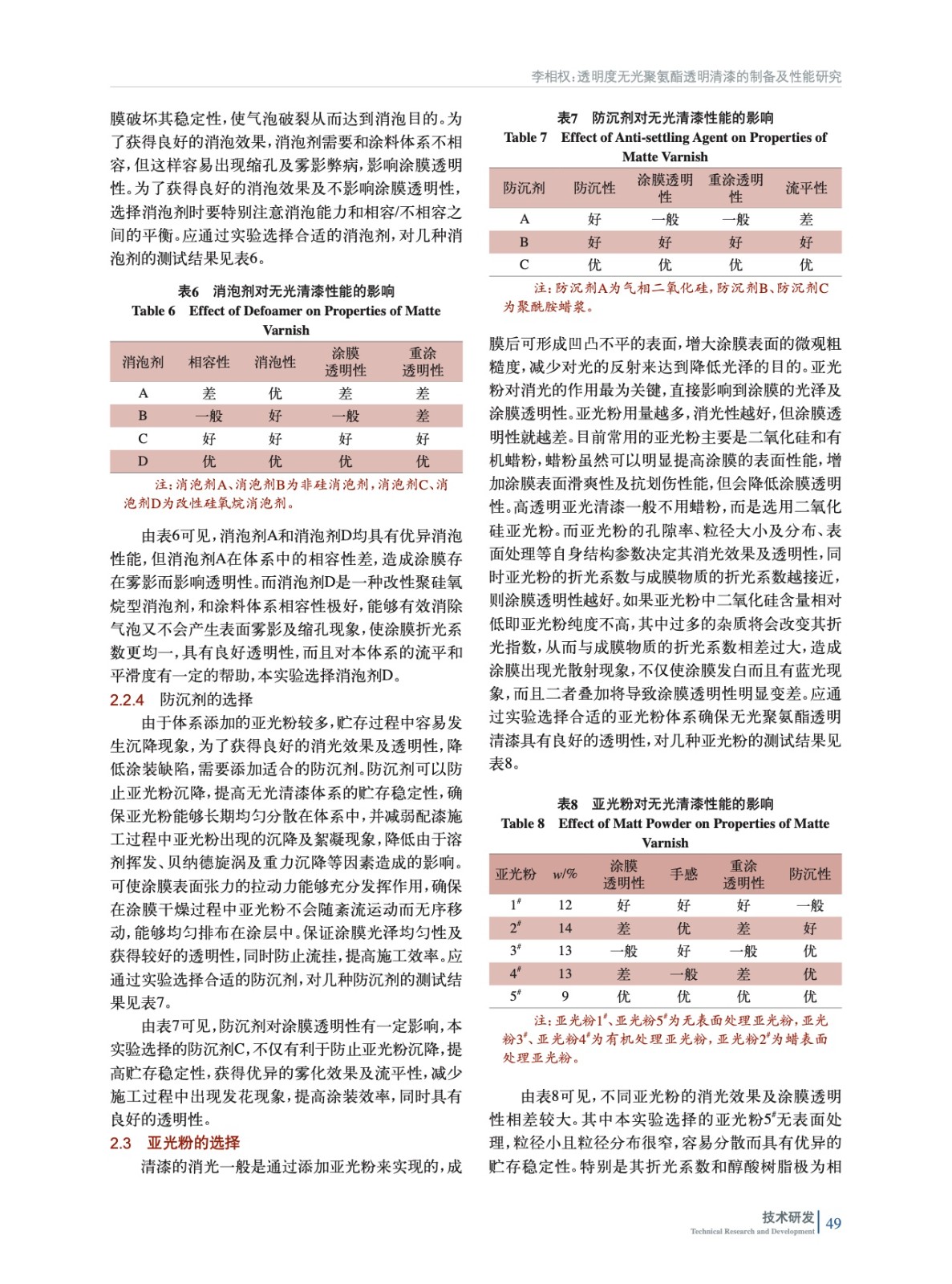 透明度無光聚氨酯透明清漆的制備及性能研究