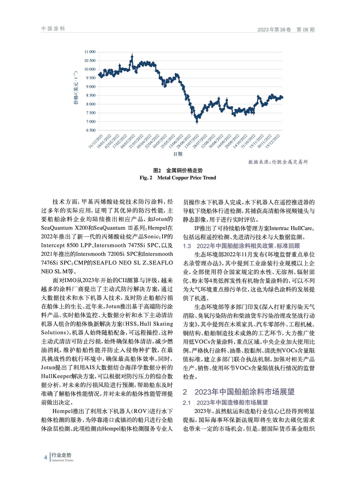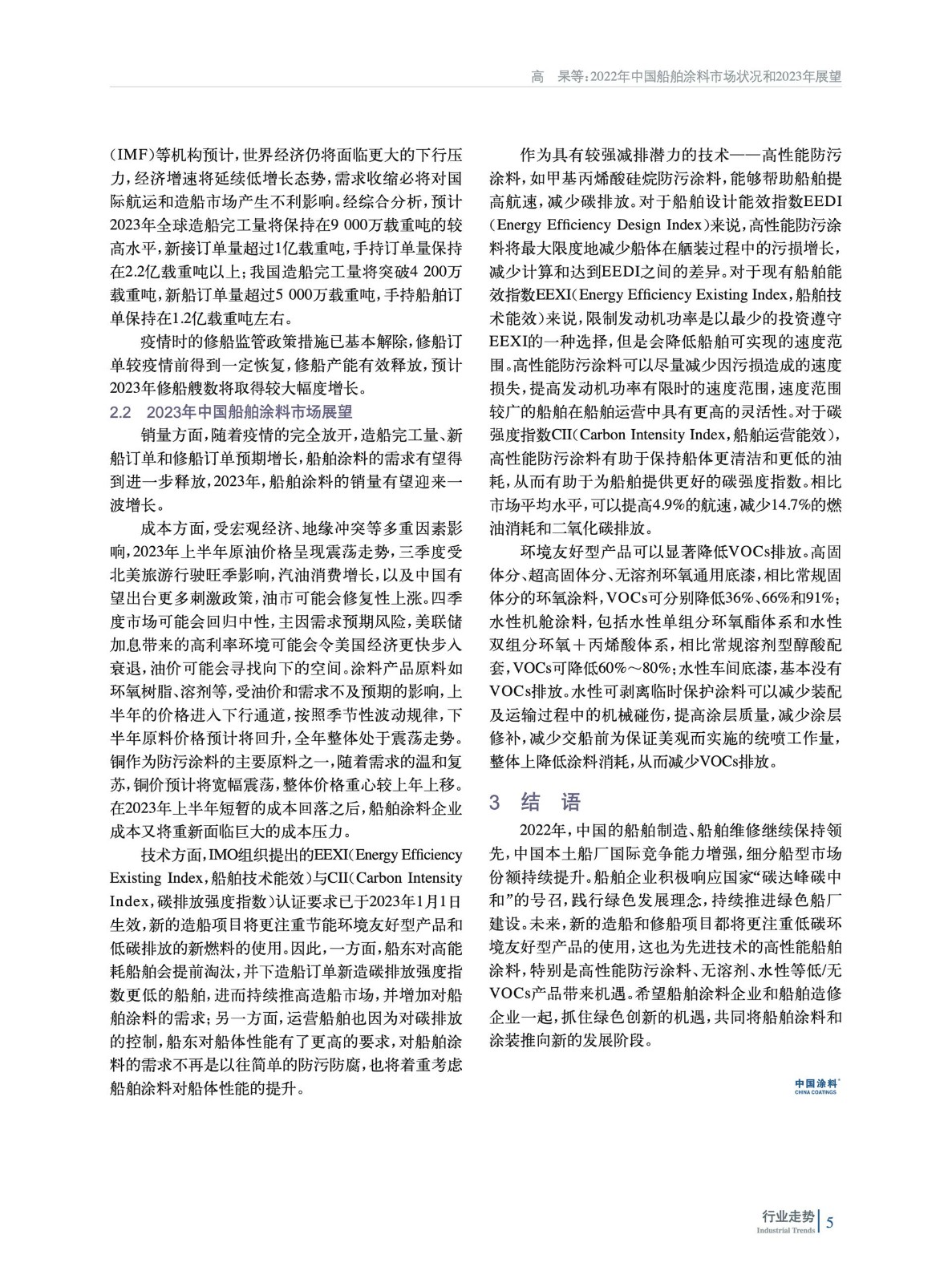 綜述了2022年中國造修船市場及船舶涂料市場情況,回顧梳理了2022年中國船舶涂料技術進展及相關政策和標準,并對2023年中國造船及船舶涂料市場進行了展望。