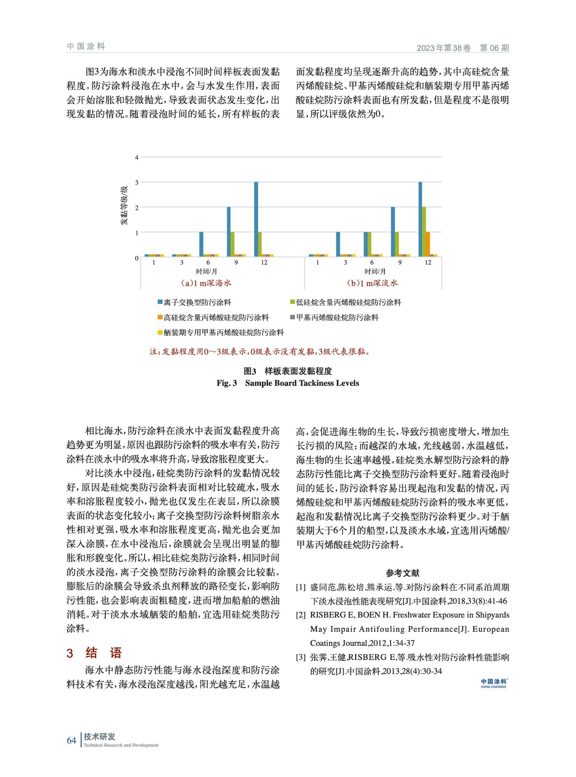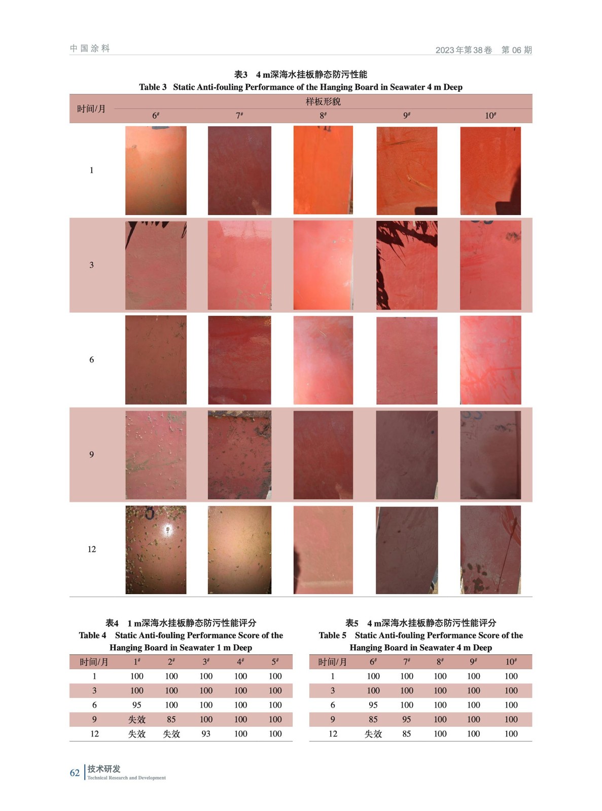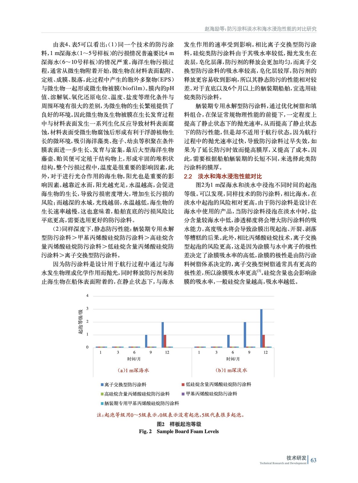 摘要:選取市場上常見的不同技術(shù)類型的防污涂料,研究不同浸泡周期下,防污涂料在淡水和海水中以及不同海水深度下的性能表現(xiàn)。結(jié)果表明,海水深度越淺,生長污損的風(fēng)險越高,硅烷類水解型防污涂料的靜態(tài)防污性能更好。防污涂料在淡水中更容易出現(xiàn)起泡和發(fā)黏的情況,丙烯酸硅烷和甲基丙烯酸硅烷防污涂料的吸水率更低,起泡和發(fā)黏情況更少。該研究結(jié)果為碼頭舾裝階段的防污涂料選擇和造船工藝改進提供了參考。