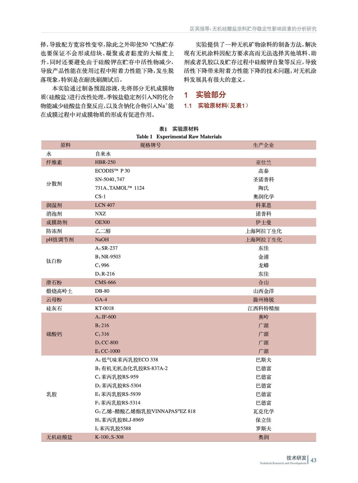無機硅酸鹽涂料貯存穩定性影響因素的分析研究
