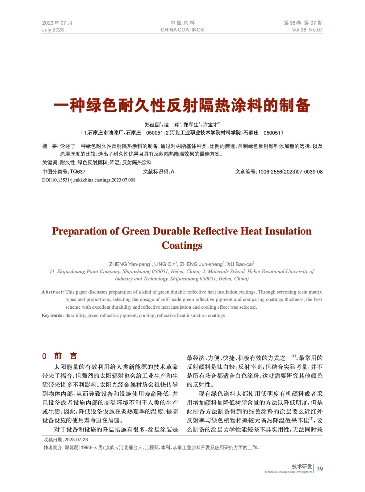 發(fā)表于2023-11-13 13:34:47| 次閱讀| 來源中國涂料| 作者鄭延朋,凌 芹,鄭軍生,許寶才