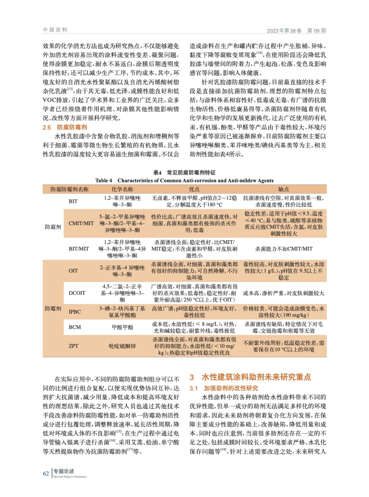 綜述了水性建筑涂料用分散劑、成膜助劑、增稠助劑、消泡劑、消光劑、防腐防霉劑等主要助劑的類型、特點及應用情況,并指出了水性建筑涂料助劑的未來研究重點。