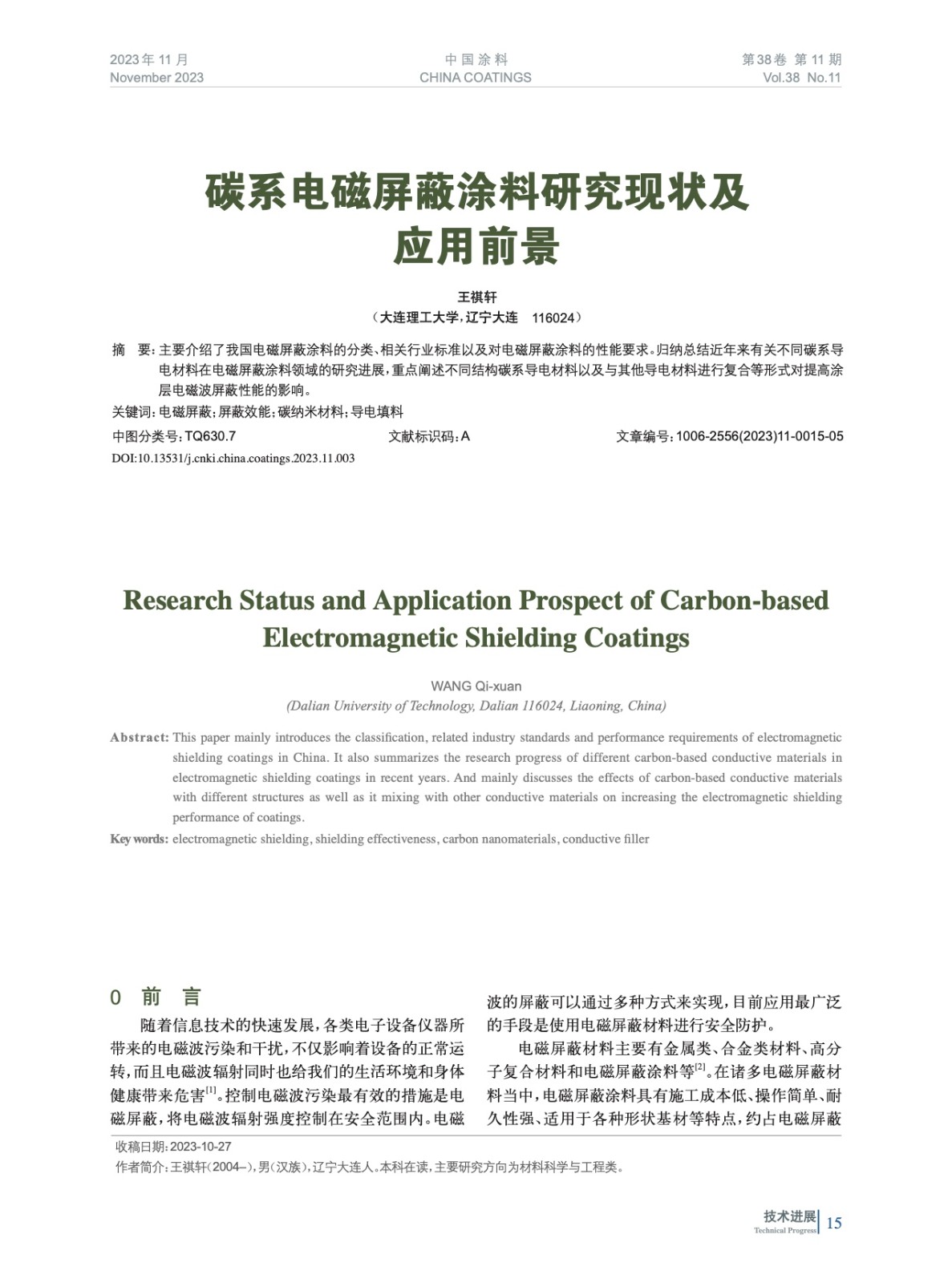 主要介紹了我國電磁屏蔽涂料的分類、相關行業標準以及對電磁屏蔽涂料的性能要求。歸納總結近年來有關不同碳系導電材料在電磁屏蔽涂料領域的研究進展,重點闡述不同結構碳系導電材料以及與其他導電材料進行復合等形式對提高涂層電磁波屏蔽性能的影響。