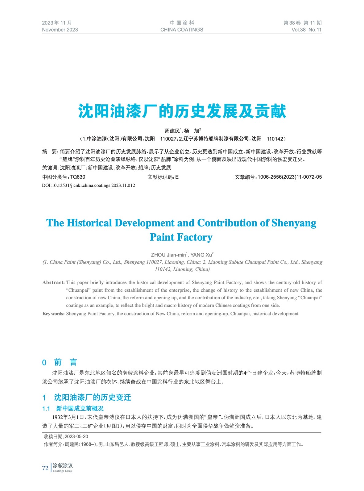 沈陽(yáng)油漆廠的歷史發(fā)展及貢獻(xiàn)