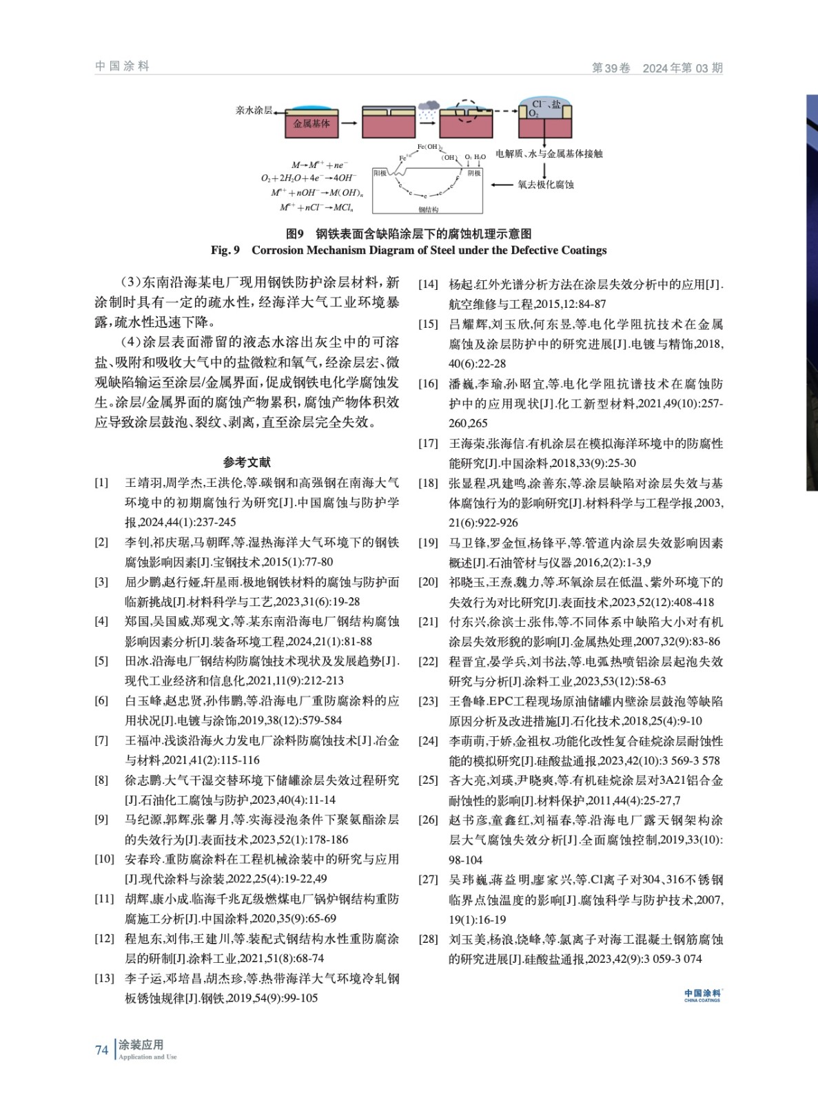 摘要:針對沿海電廠鋼結構涂層失效的分析,可為防腐材料選擇、防腐方案的制定提供重要依據。利用便攜式顯微鏡觀察現役涂層宏觀缺陷;利用膠帶紙法粉化等級評定、傅里葉變換紅外光譜(FT-IR)分析、電化學交流阻抗(EIS)測試判斷涂層微觀缺陷;利用簡化的“接觸角測定法”測定涂層表面疏水性。結果表明,涂層存在夾雜氣泡破裂和填料脫落導致的孔洞缺陷,涂層/基體的熱膨脹系數不匹配導致的裂紋缺陷,碰撞、彎折導致的裂縫缺陷等宏觀缺陷;經一定時間暴露后,涂層成膜高分子降解、光老化導致微觀缺陷;新涂制涂層材料具有一定的疏水性,經工業海洋大氣環境暴露,疏水性迅速下降。由此可得,涂層表面滯留的液態水溶出灰塵中的可溶鹽、吸附和吸收大氣中的鹽微粒和氧氣,經涂層缺陷輸運至涂層/金屬界面,促成鋼鐵電化學腐蝕發生。涂層/金屬界面的腐蝕產物累積,腐蝕產物體積效應導致涂層鼓泡、開裂、剝離,直至涂層完全失效。