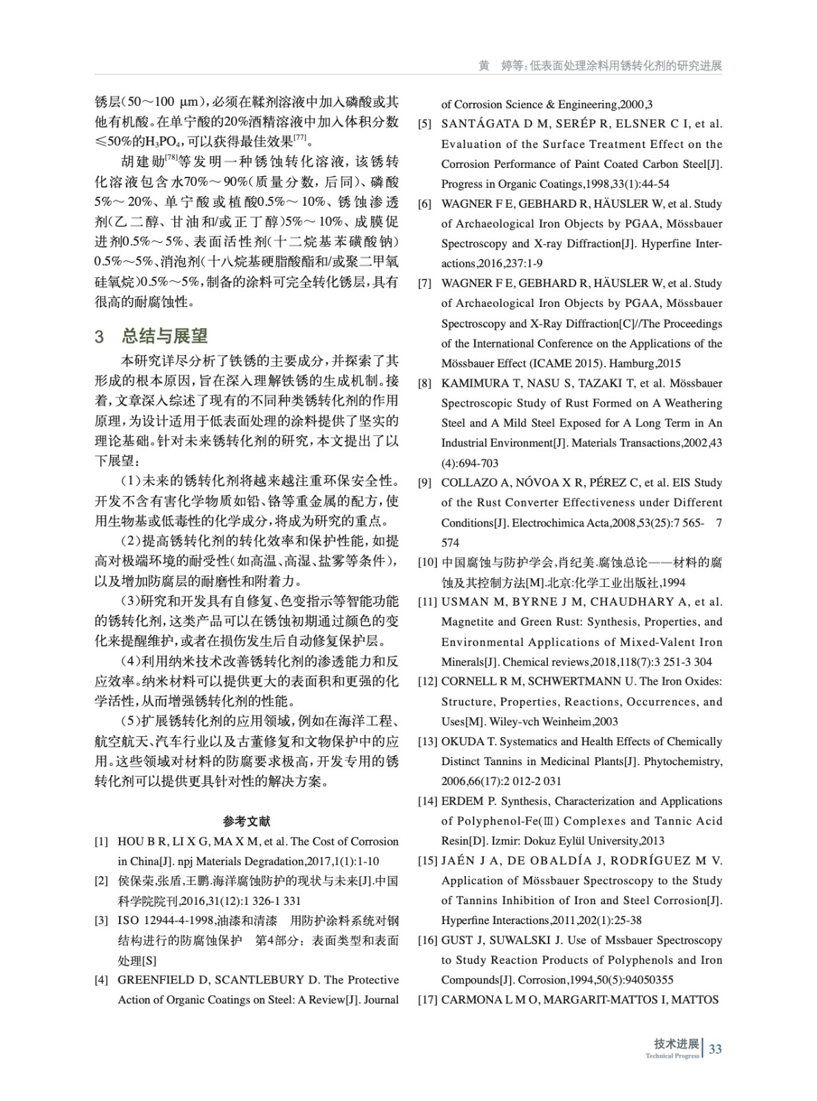 深入分析了鐵銹的生成過程及其主要成分,并詳細探討了包括單寧酸、沒食子酸、磷酸、木質素、植酸、肟、吡啶、兒茶酚等在內的銹轉化劑的研究現狀并對銹轉化劑的未來發展趨勢進行了展望。通過這些分析,為銹轉化劑的應用提供理論和實踐參考。