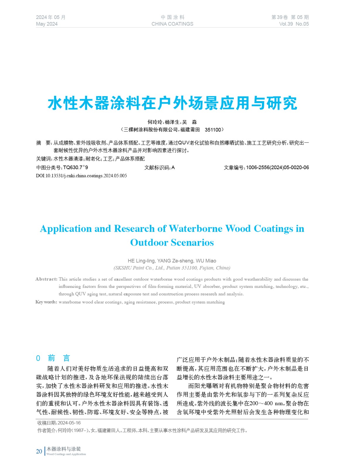 從成膜物、紫外線吸收劑、產品體系搭配、工藝等維度,通過QUV老化試驗和自然曝曬試驗、施工工藝研究分析,研究出一套耐候性優異的戶外水性木器涂料產品并對影響因素進行探討。