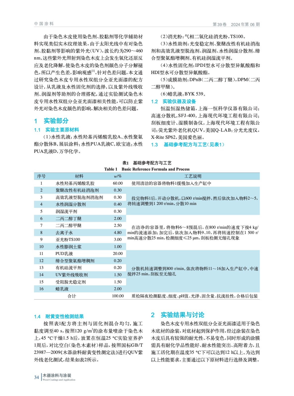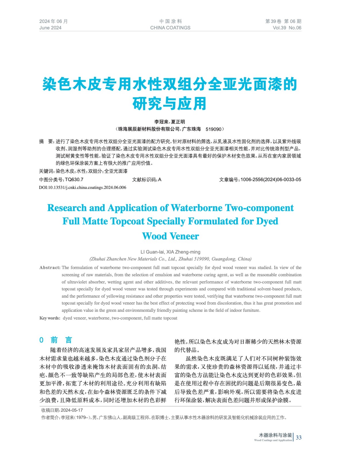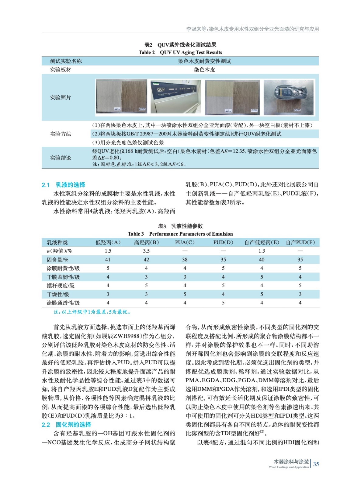 染色木皮專(zhuān)用水性雙組分全亞光面漆的研究與應(yīng)用