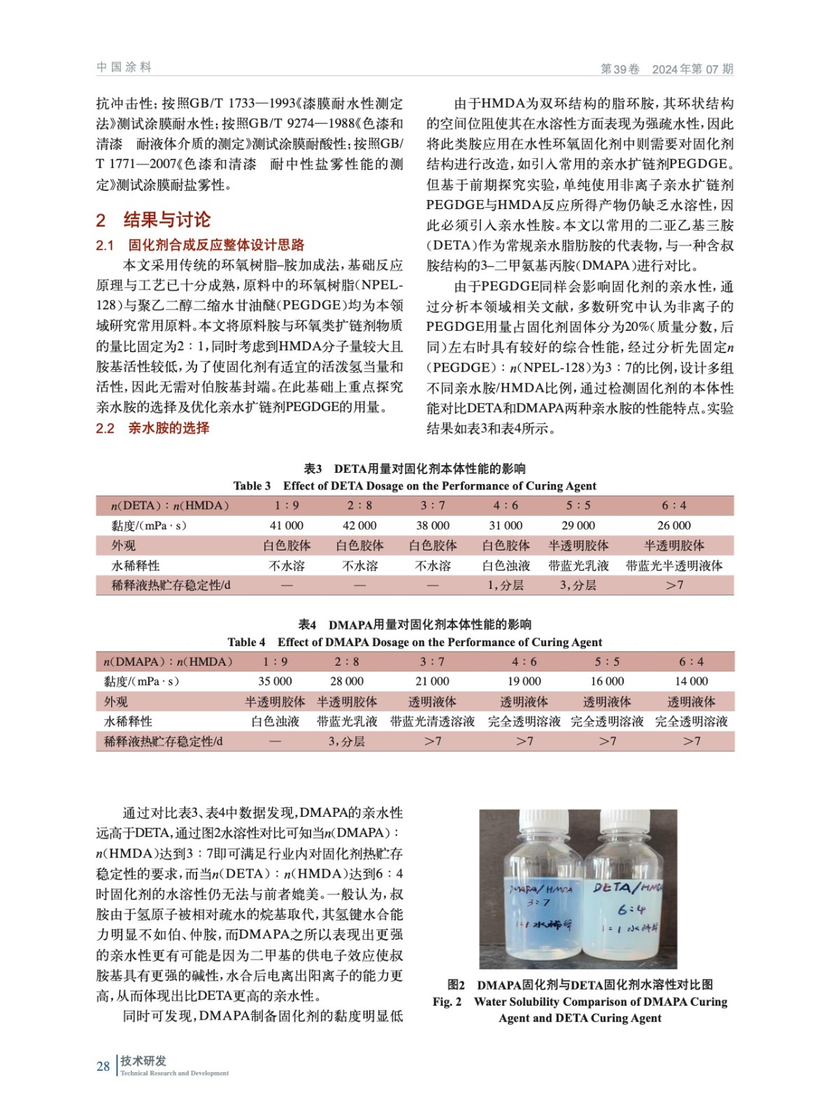基于3–二甲氨基丙胺在水性脂環胺固化劑中的應用研究